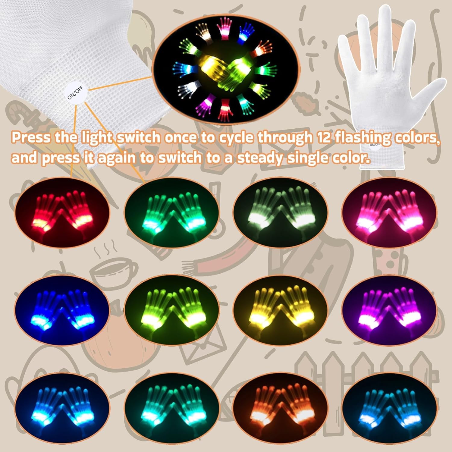 LED Light Show: Enhance any event with these vibrant LED gloves, suitable for children age 4-7 8-12. Applicable for birthdays or holidays, these gloves inject excitement into every occasion