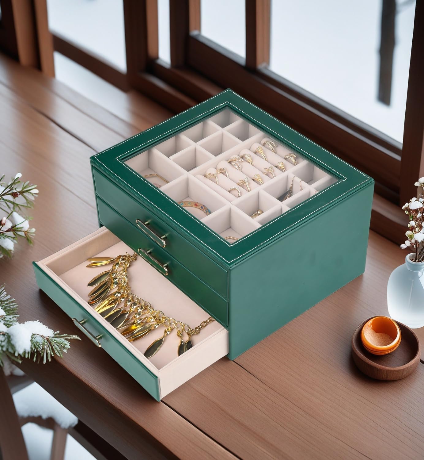 I didn’t expect to love this jewelry box this muchWhat really won me over:• A lot of space. Rings, earrings, bracelets, long necklaces – everything fits without tangling.• Smart dividers. Sections are well thought out, nothing mixes together, and you can actually see what you have.• Smooth drawers. They slide out easily, don’t stick, don’t wobble• White but not high-maintenance. I was worried it would get dirty quickly, but it doesn’t. Easy to wipe clean.• Transparent lid. You see all your jewelry at once – surprisingly practical when choosing accessories.• Looks neat and expensive on the shelf, not bulky, not “cheap-looking”.Feels solid and well-made. The box is stable, doesn’t wobble, and keeps its shape even when fully loaded with jewelry.It was important for me:- long necklaces fit without bending- drawers don’t fall out. Closes securely. The drawers stay in place and don’t slide out on their own, which makes it safe for everyday use.- no smell when unpacked