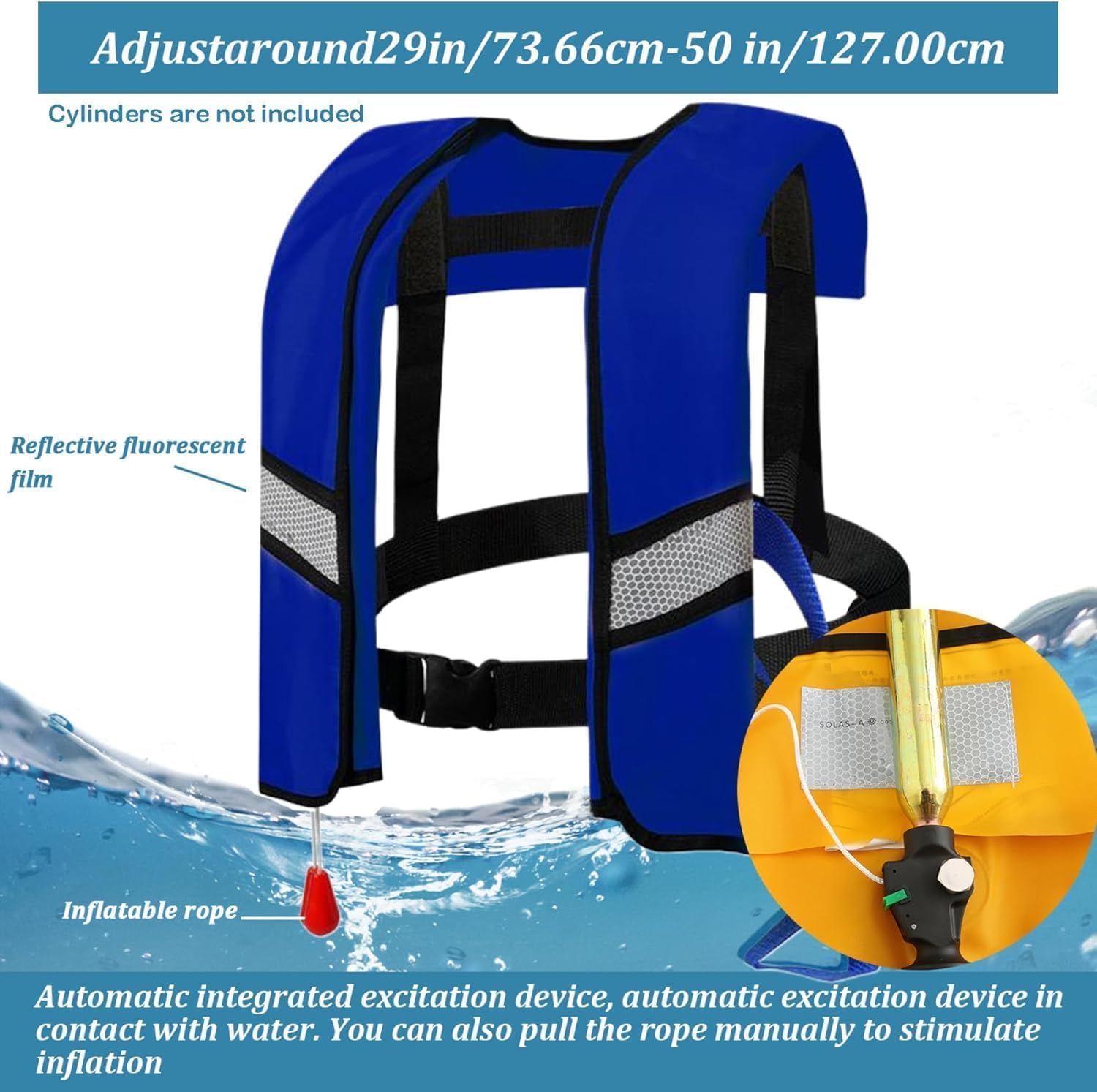 Auto-Inflation in 3 Seconds:Designed to inflate automatically within 3 seconds upon water contact! Made with durable nylon fabric, it’s ergonomic, breathable, and ultra-comfortable to wear.