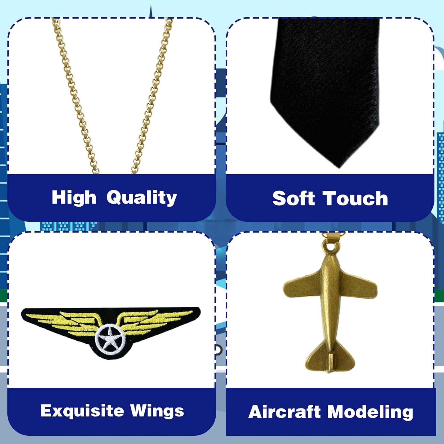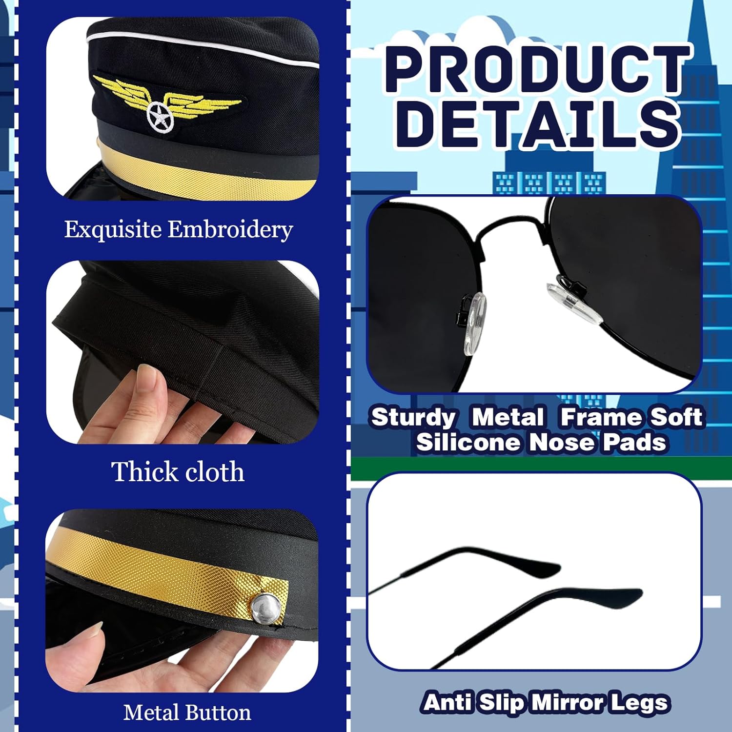 6 Pcs Airline Pilot Captain Costume Kit with Aviator Sunglasses,Pilot Costume Accessories Set for Aviation Halloween Dress Up