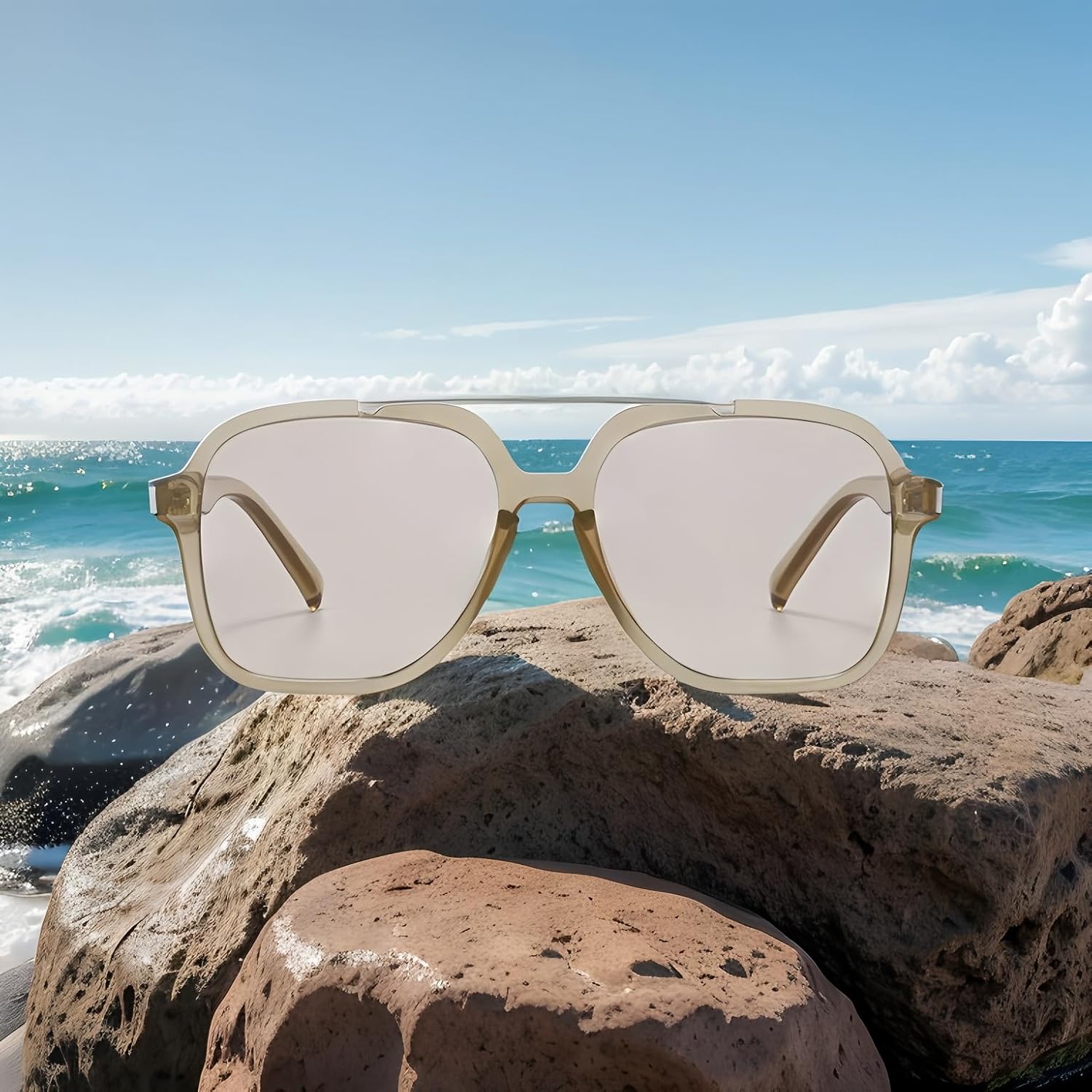 These sunglasses are trendy! I love the square aviator style; they look great on both women and men. They feel lightweight but still well-made, and the design really elevates any outfit.Super stylish and comfortable to wear. I love them!
