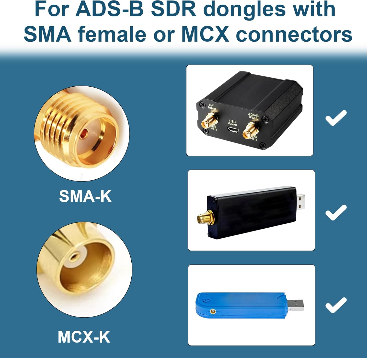 These ADS-B antennas fit great with my RTL-SDR. I like that the bundle includes both 1090 MHz and 978 MHz, so I can cover both frequencies. Even living in a valley where reception is tough, these gave me a noticeable boost—I was finally able to make more contacts with my receiver.They’re well built, the gain is excellent, and for the price, the value is really solid. Definitely a worthwhile upgrade if you’re running an SDR for ADS-B.