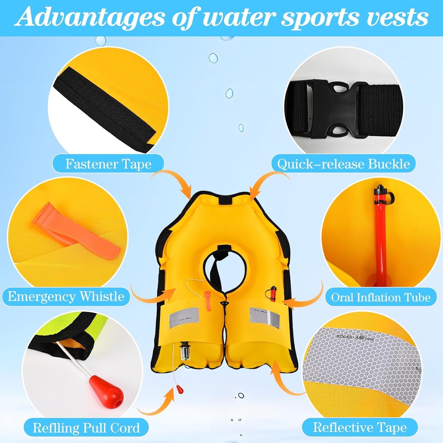 [Reusable]: This water sports vest is made of high-quality materials, durable and reusable (just replace a new 33g gas cylinder to continue using it), and it can be folded and stored in just a few seconds after Deflate.