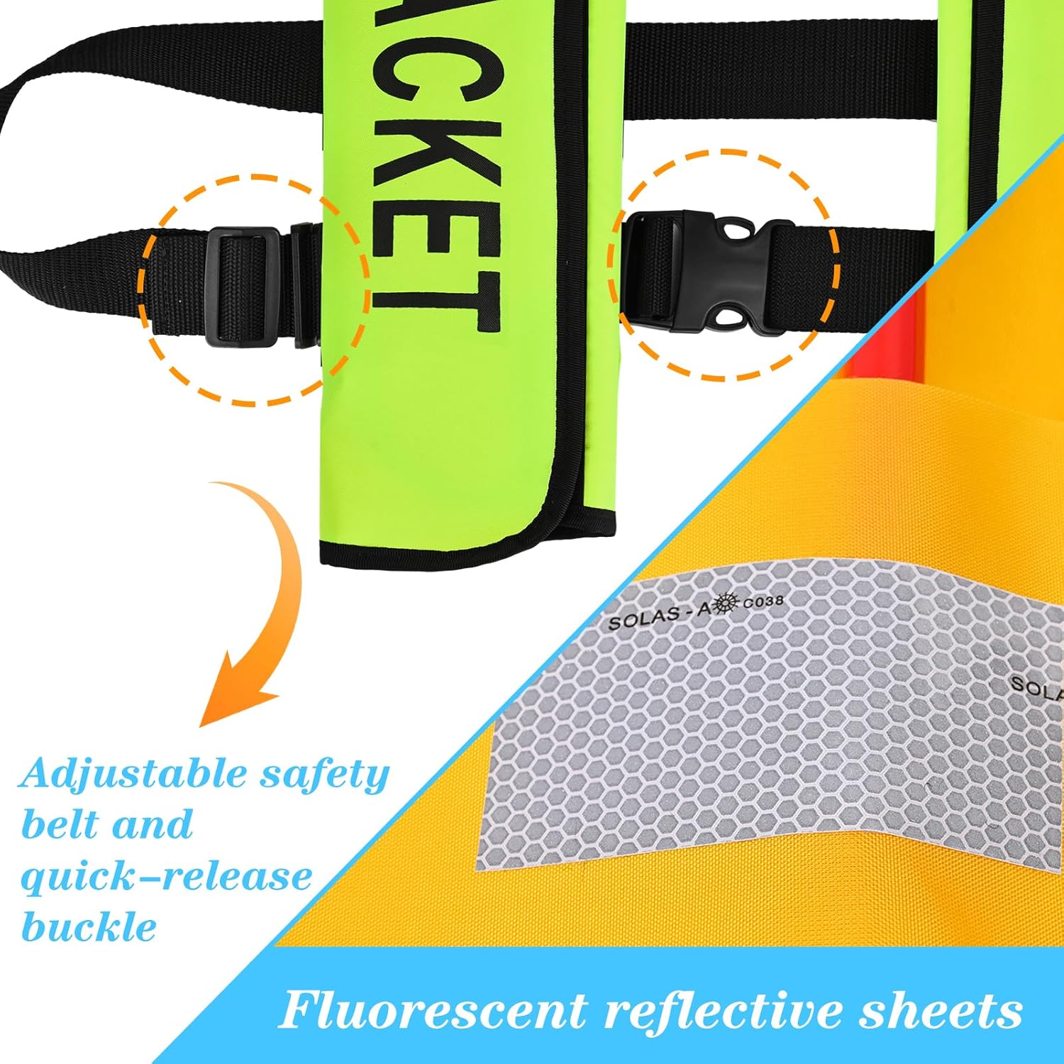 Meenoutt Adult Self-Inflating Water Sports Jacket is a fast-inflating,(Link without 33g carbon dioxide gas cylinder) highly buoyant jacket that is a must-have for water sports gear. Made of high-quality Made of tear-resistant 300D waterproof Oxford cloth, this product is lightweight, compact, and keeps you cool even on hot summer days. The whistle and reflector equipped can play an important role in an emergency to ensure your own safety.