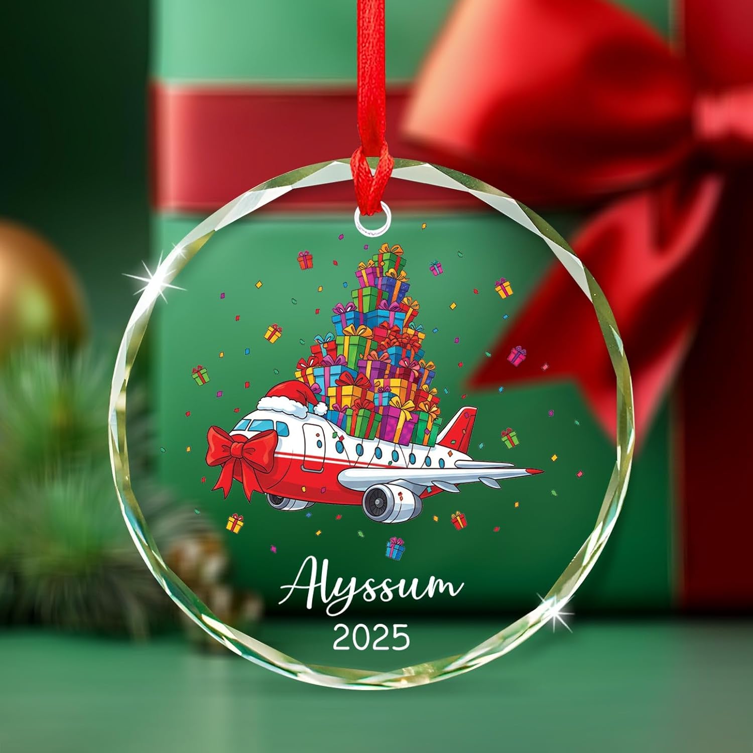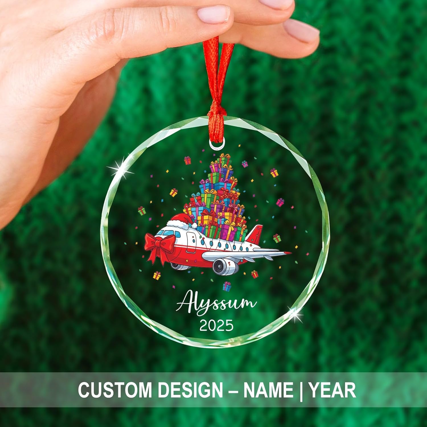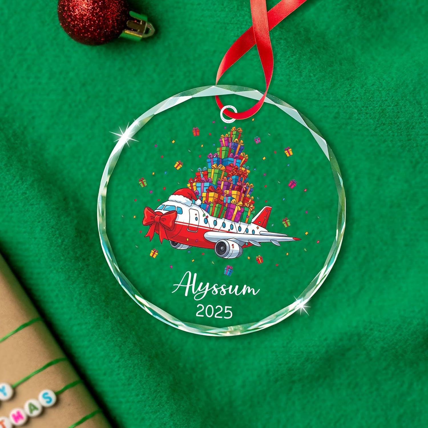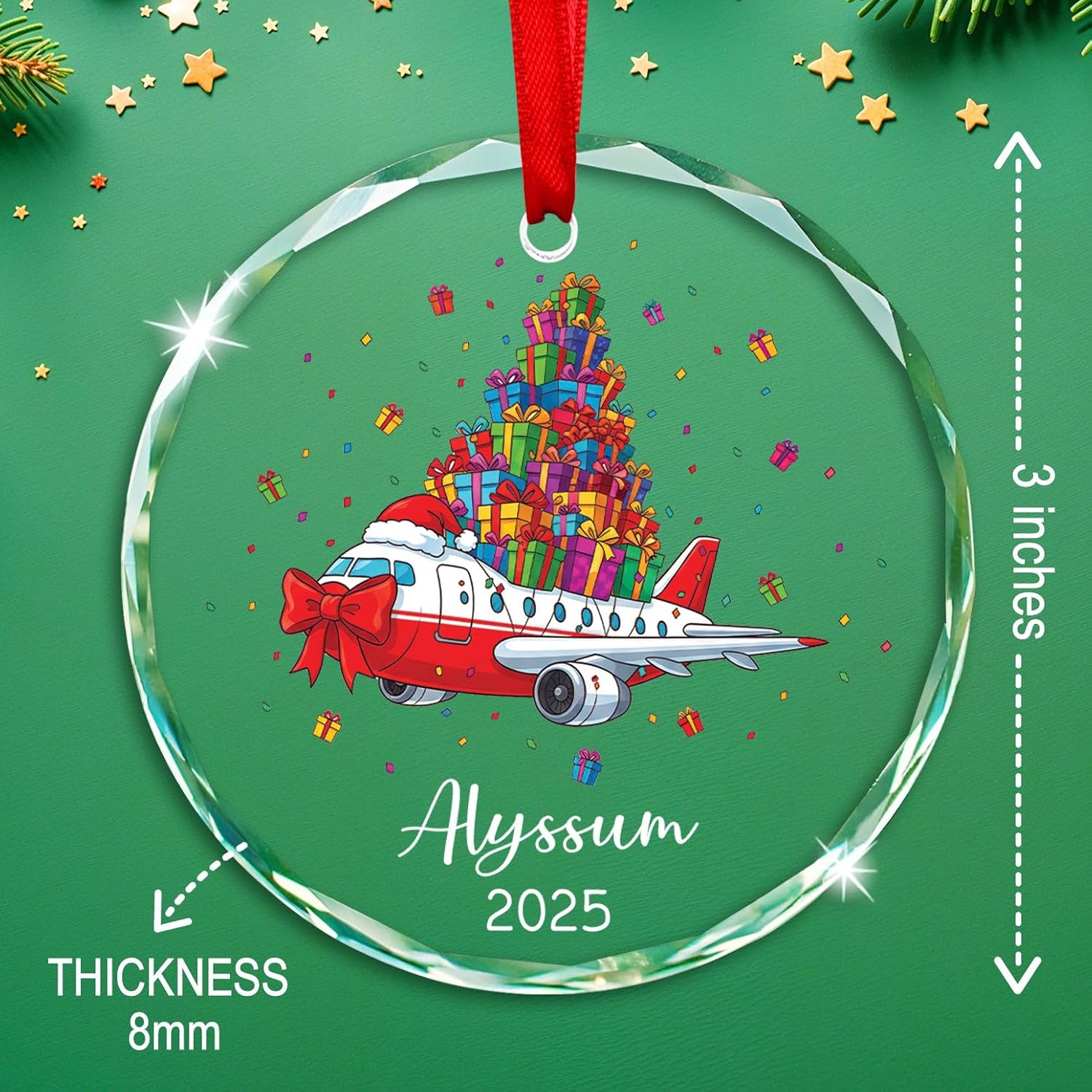 Airplane Christmas Ornament 2025, Personalized Airplane Glass Ornament with Name, Custom Airliner Pilot Keepsake Ornaments, Aviation Gifts for Pilots, Cabin Crew, Flight Attendant, Flying Lovers