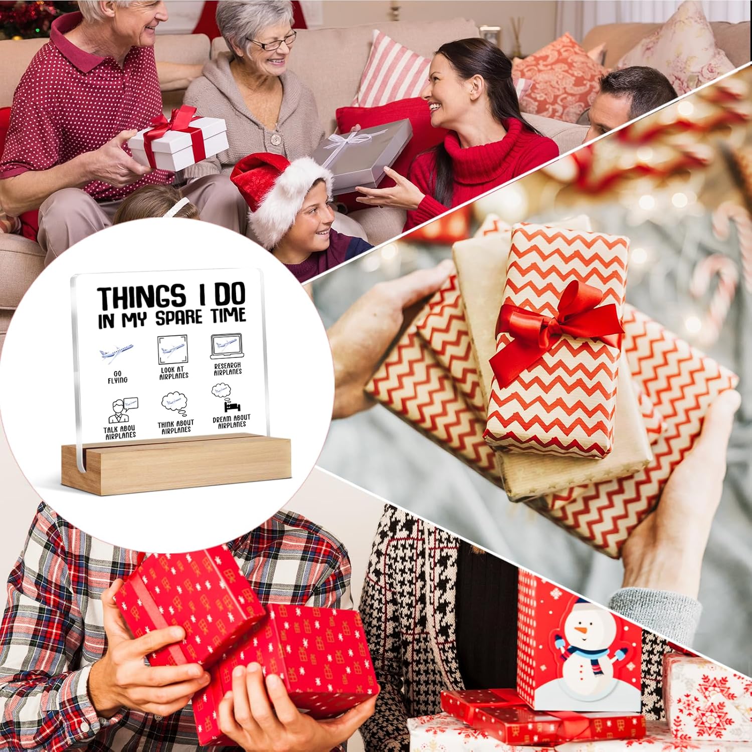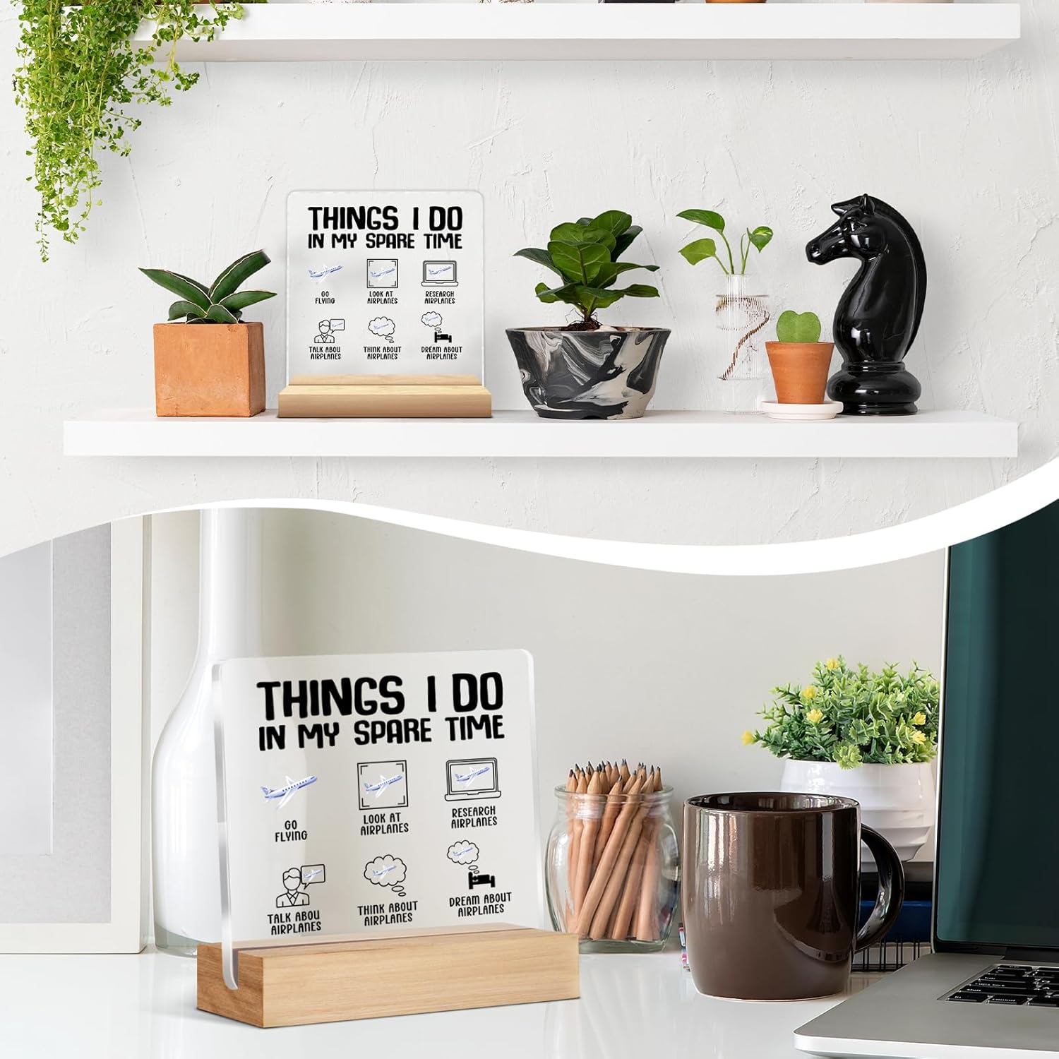 Airplane Gifts, Pilot Gifts for Men Women, In My Spare Time Airplane Acrylic Plaque Aviation Gift Dorm Room Desk Signs Decor