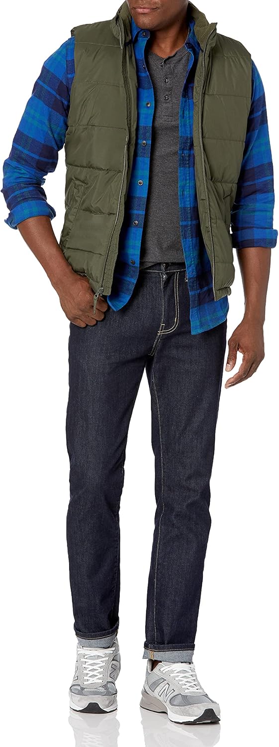 Amazon Essentials mens Midweight Fleece-Lined Insulated Puffer Vest