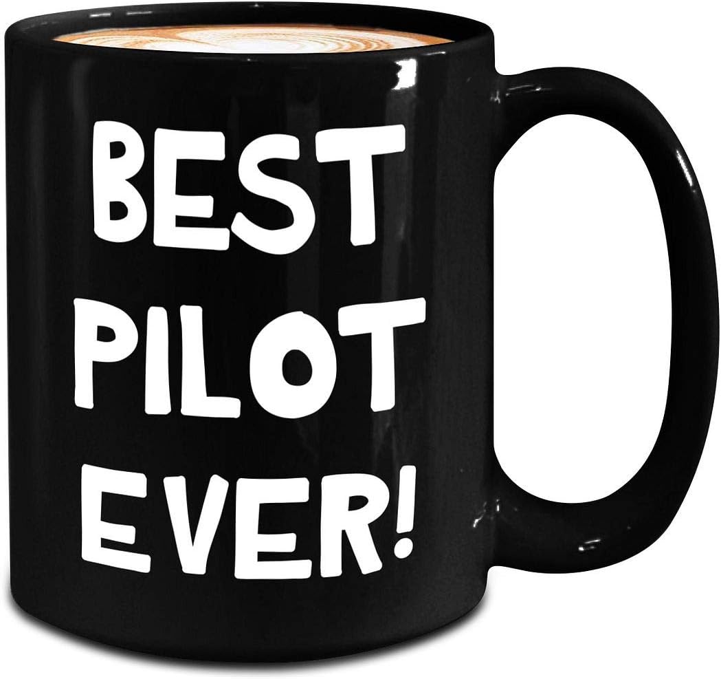 Appreciation Gifts for Pilot Mug – Large 15oz Black Ceramic Coffee Tea Cup – Aviation School Helicopter Aviator Airline Captain Aircraft Flight Navigator Airplane Plane Funny Award Idea – BestEver