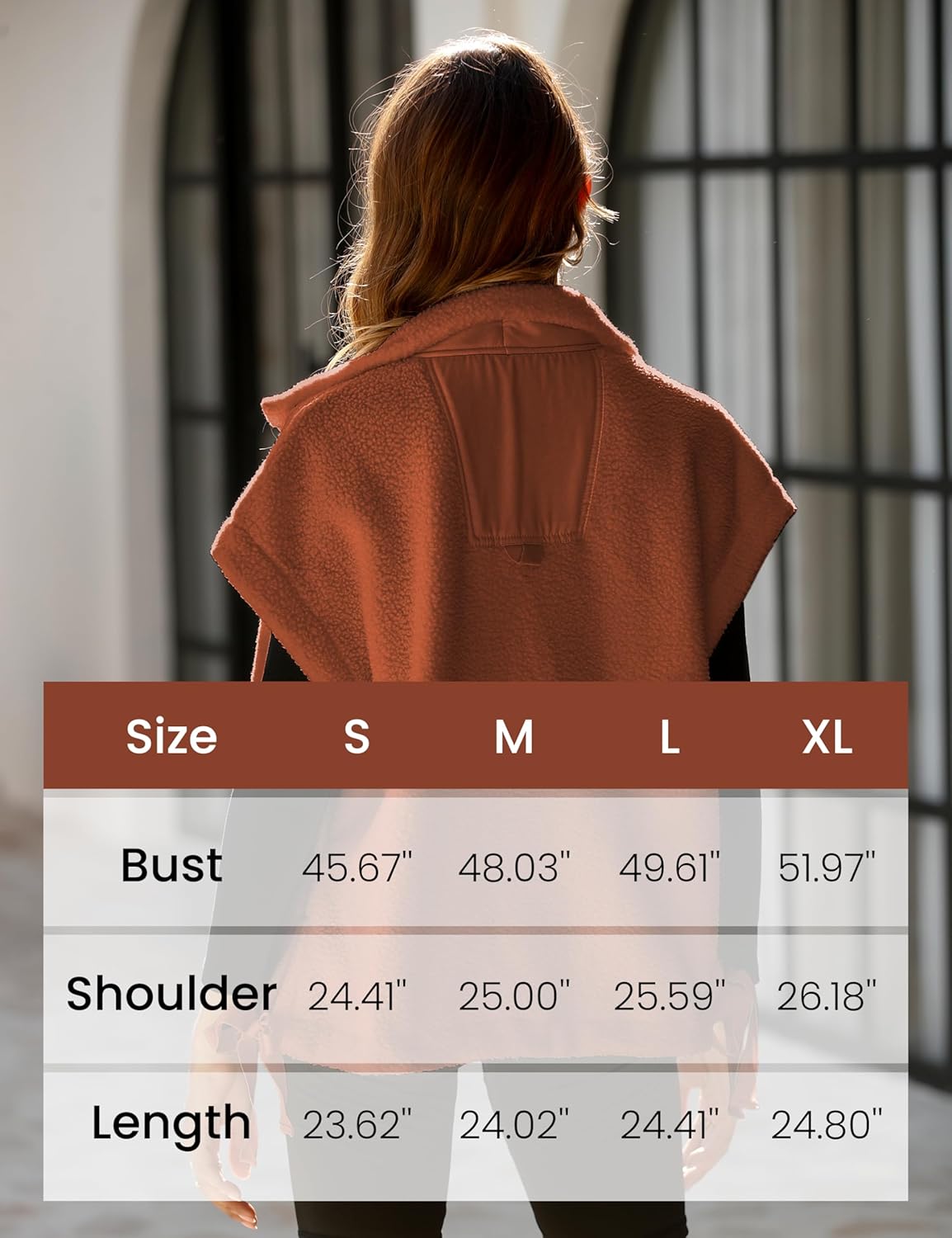 I love this vest so much! It’s actually even cuter on than it is in the pics. It’s cozy, stylish, and easy to wear with anything. I got the rust color and was hoping it really was that pretty faded rust orange and not a bright color, it was perfect!I’m 5’9″ 220lb and pregnant I got the XL…and I feel pretty in this! Thinking I might by a second one 😉