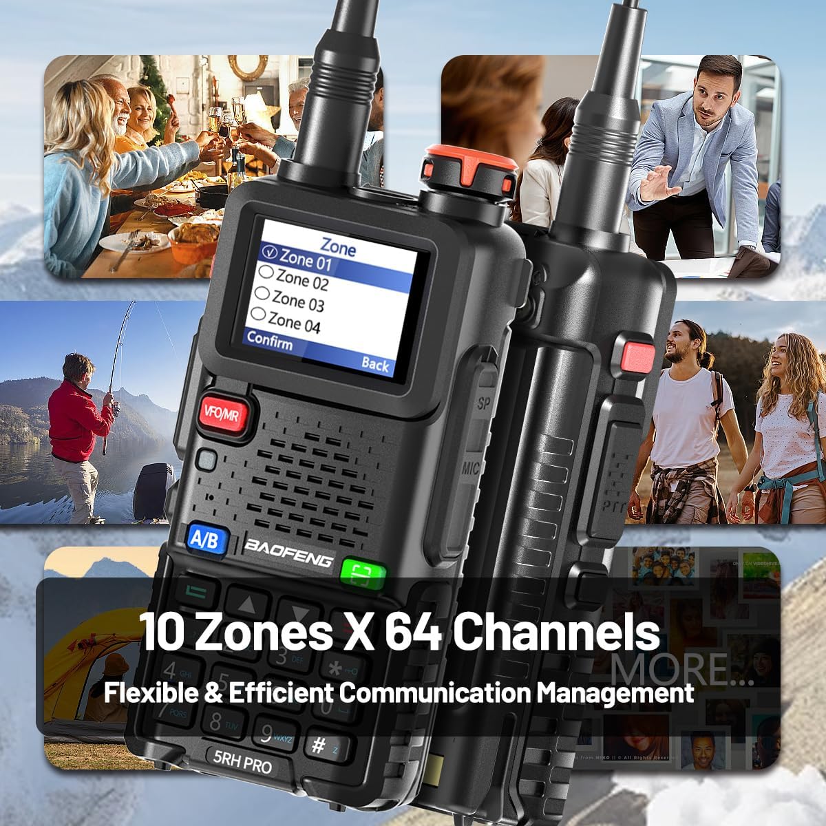 Professional Ham Radio:Up to 640 storage channels and a 1.77 inch large color screen, making operation more convenient.The enlarged walkie talkie body size is designed ergonomically to enhance user feel.Currently, 5RH PRO GPS doesn’t support chirp.FCC ID:2AJGM-5RHPRO