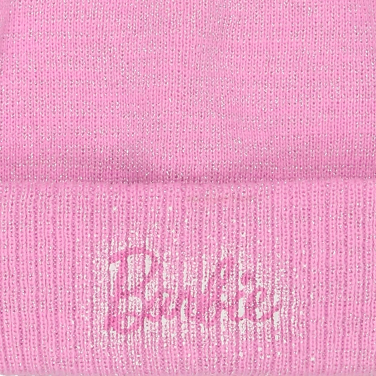 Barbie Logo Big Kids Girls Knit Hat and Gloves Set (Pink, One Size)