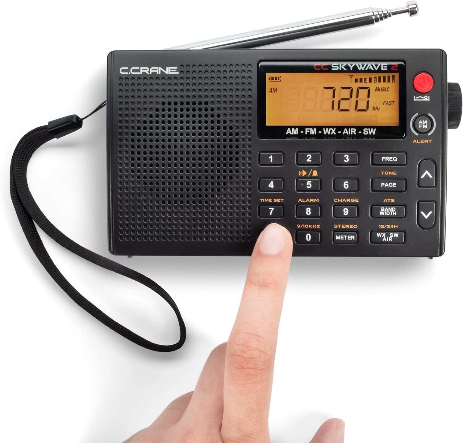 C. Crane CC Skywave 2 AM, FM, Shortwave, NOAA Weather + Alert, VHF Aviation Band, Small Battery-Operated Portable Travel Radio with Clock and Alarm