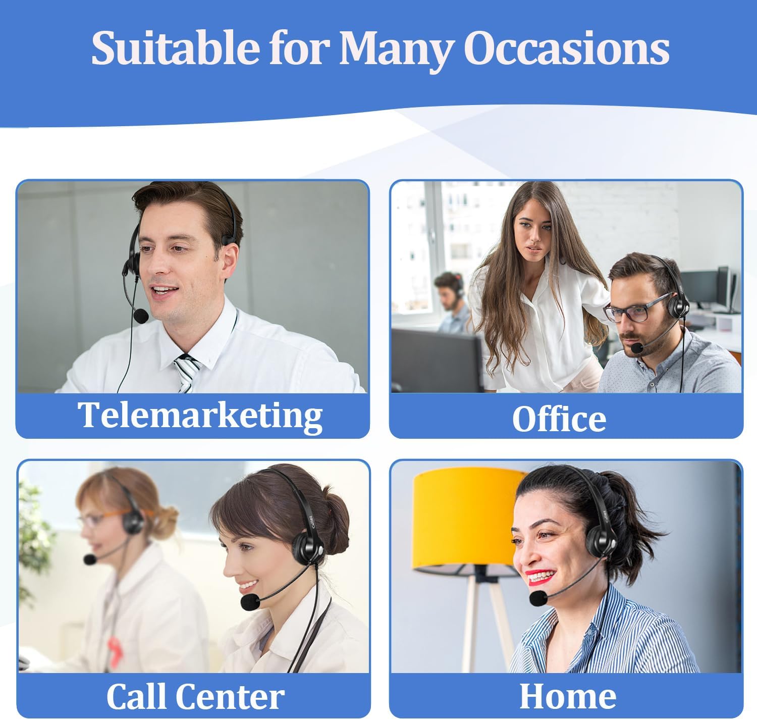 Extremely Durability:Ergonomically designed call center phone headset made with high impact plastic to continuous use, and equipped with flexible microphone boom ensure more guaranteed life span. Volume control and mute button built-in.
