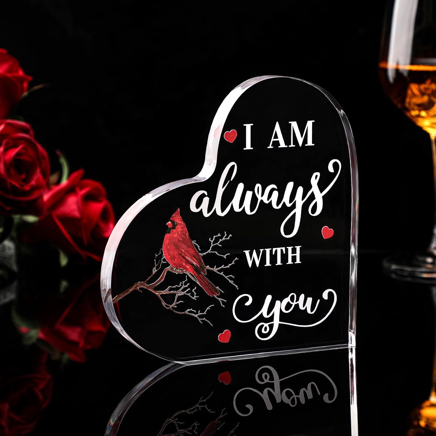 Package Contains: you will receive a package including a memorial crystal heart decor printed with some words and a red bird, which looks very bright and has texture, nice as a gift