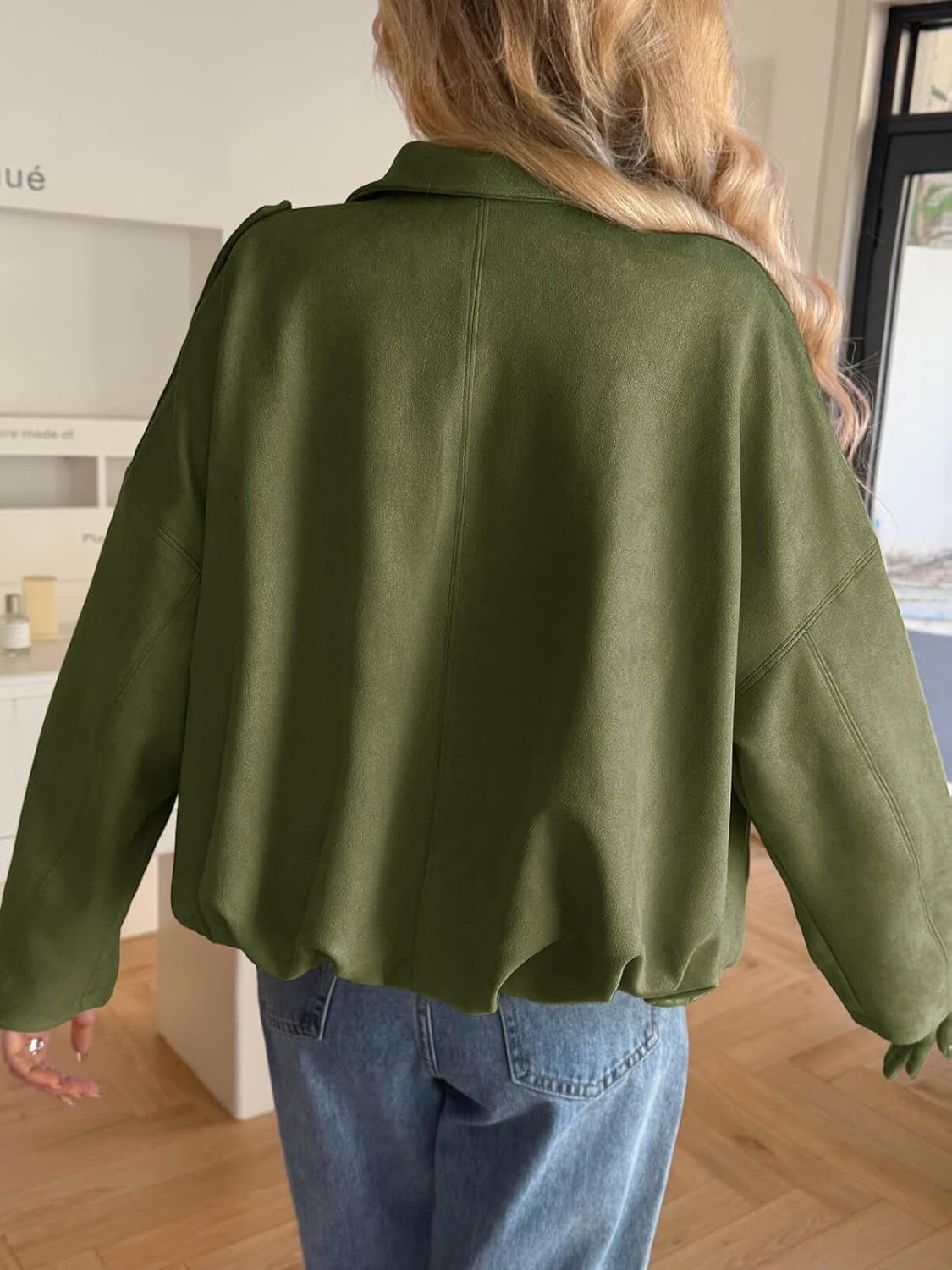 8 reviews for Cicy Bell Womens Faux Suede Bomber Jackets Oversized Cropped Zip Up Lapel Coats Fall Casual Outerwears
