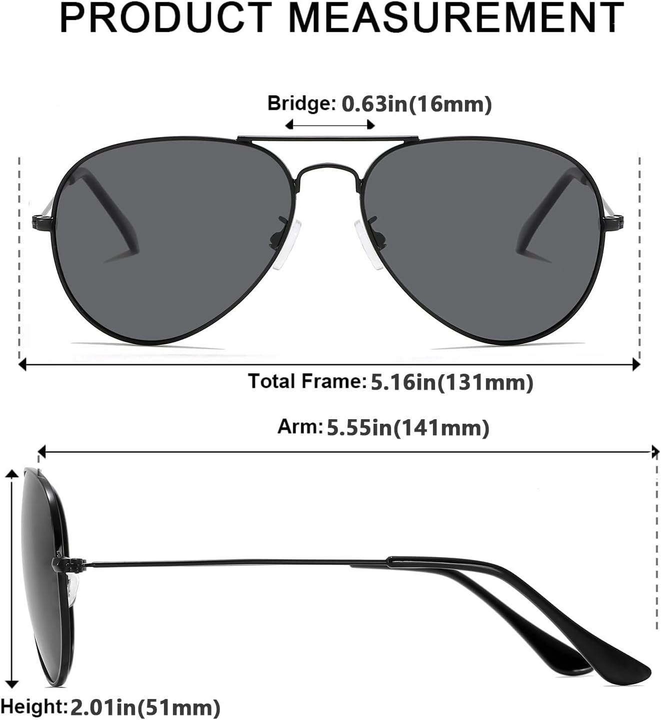 Classic Aviator Polarized Sunglasses for Men Women Metal Frame UV400 Protection Lightweight for Driving Outdoor