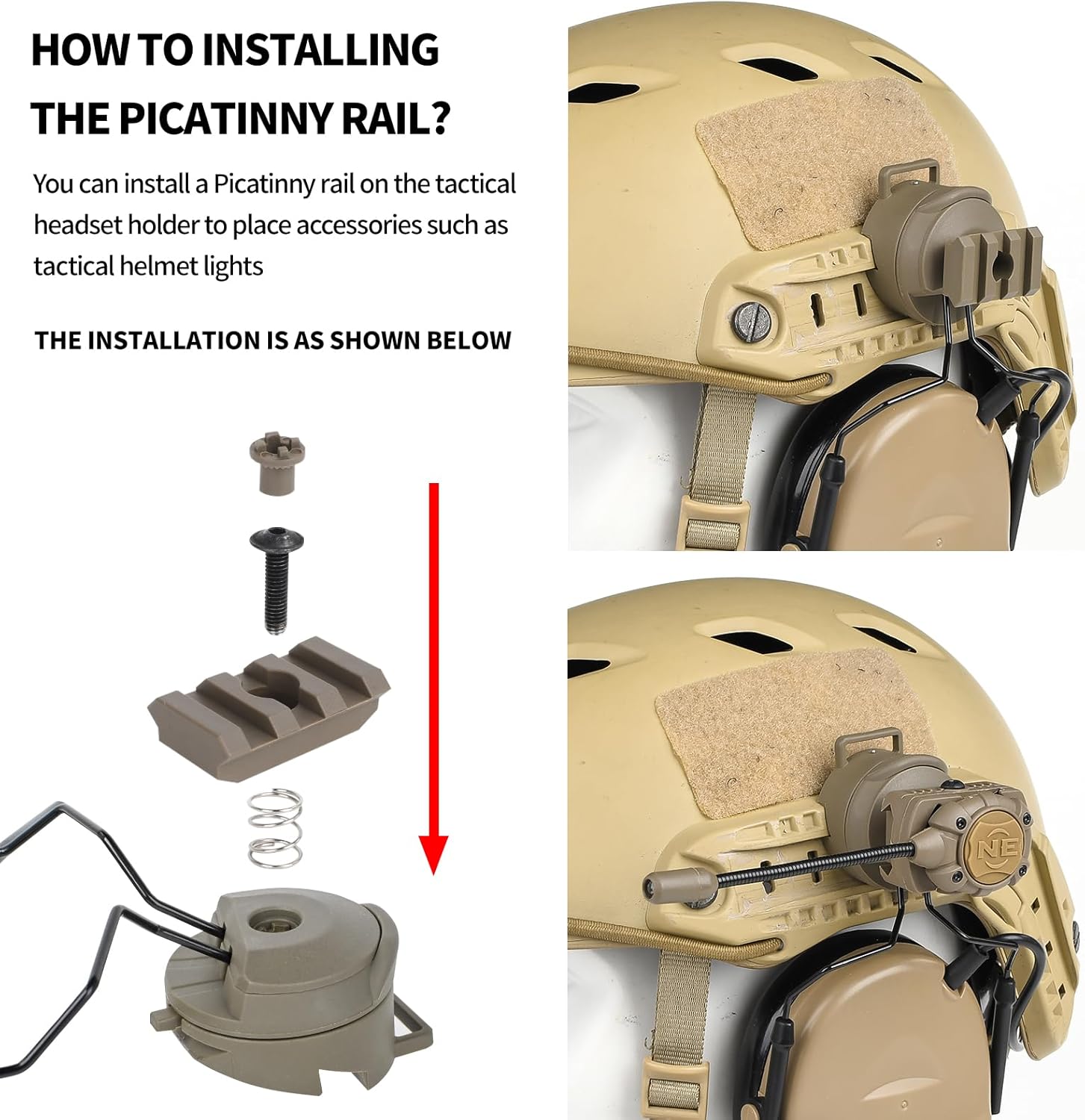 Compatible – Tactical headsets can be matched with the full range of FAST helmets (BJ, PJ, MH), ACH helmets, MICH helmets, IBH helmets, as long as they have ARC rails on the sides and fit rail sizes 19-21mm