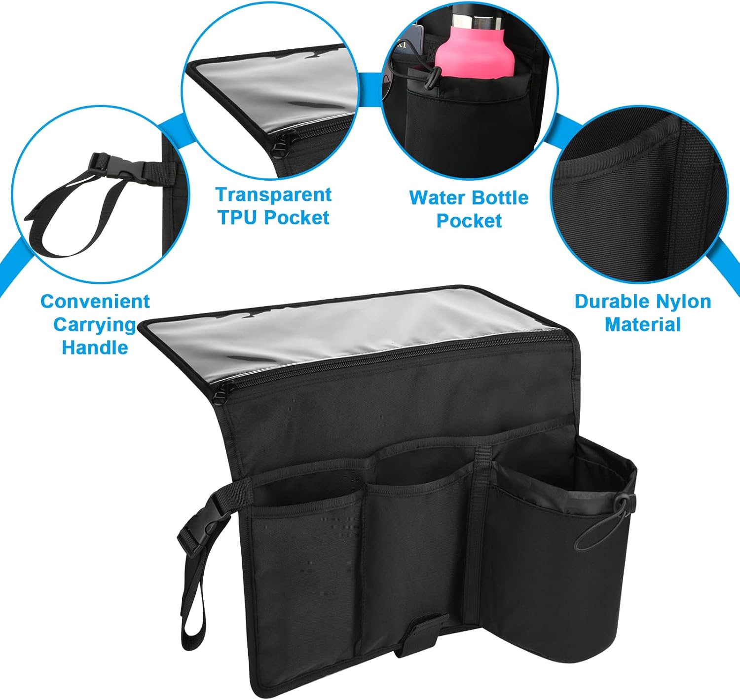 【Reliable Material】 Made of high quality nylon and thickened TPU material, the stitching is strong, the seat back organizer is not easy to tear, durable enough to withstand heavy weight, it can provide good protection for your personal items.