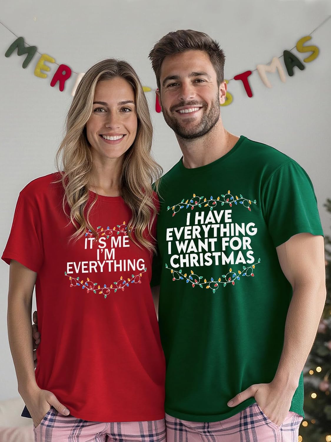 I I Have Everything I Want for Christmas Couples T-Shirt Funny Letter Matching Short Sleeve Tops