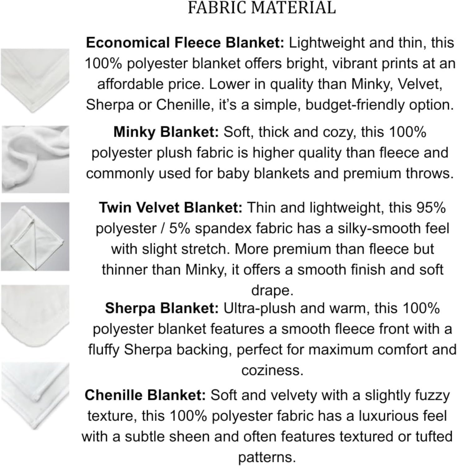 Multiple Fabric Options: Choose from Fleece, Minky, Sherpa, Twin Velvet, or Chenille to match your comfort and style preference.
