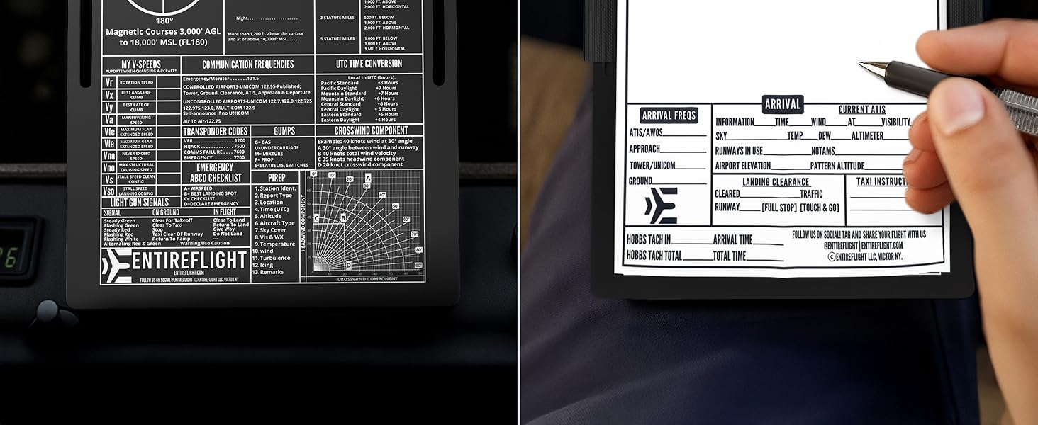 EntireFlight combines premium materials, quick-reference tools, and pilot-focused features in one durable package, making it the go-to kneeboard for both VFR and training flights.