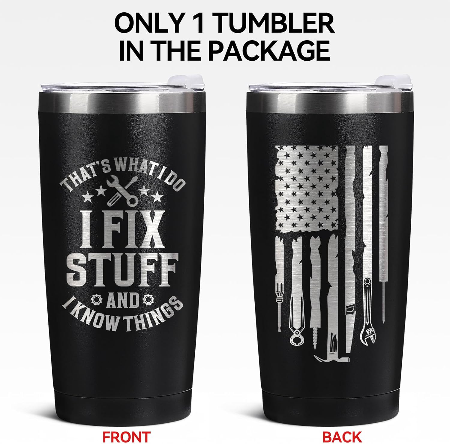 Father’s Day Gift for Dad, Grandpa, Husband & Mechanics – 20oz Black Tumbler | I Fix Stuff & I Know Things – Funny Christmas Birthday Gift for Men | Dad Gifts