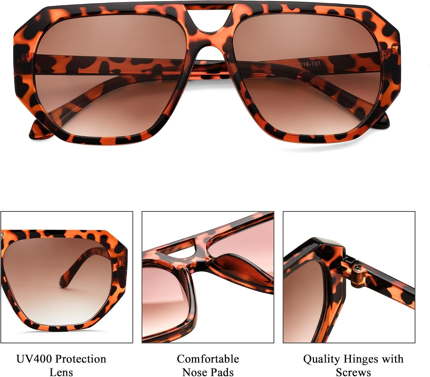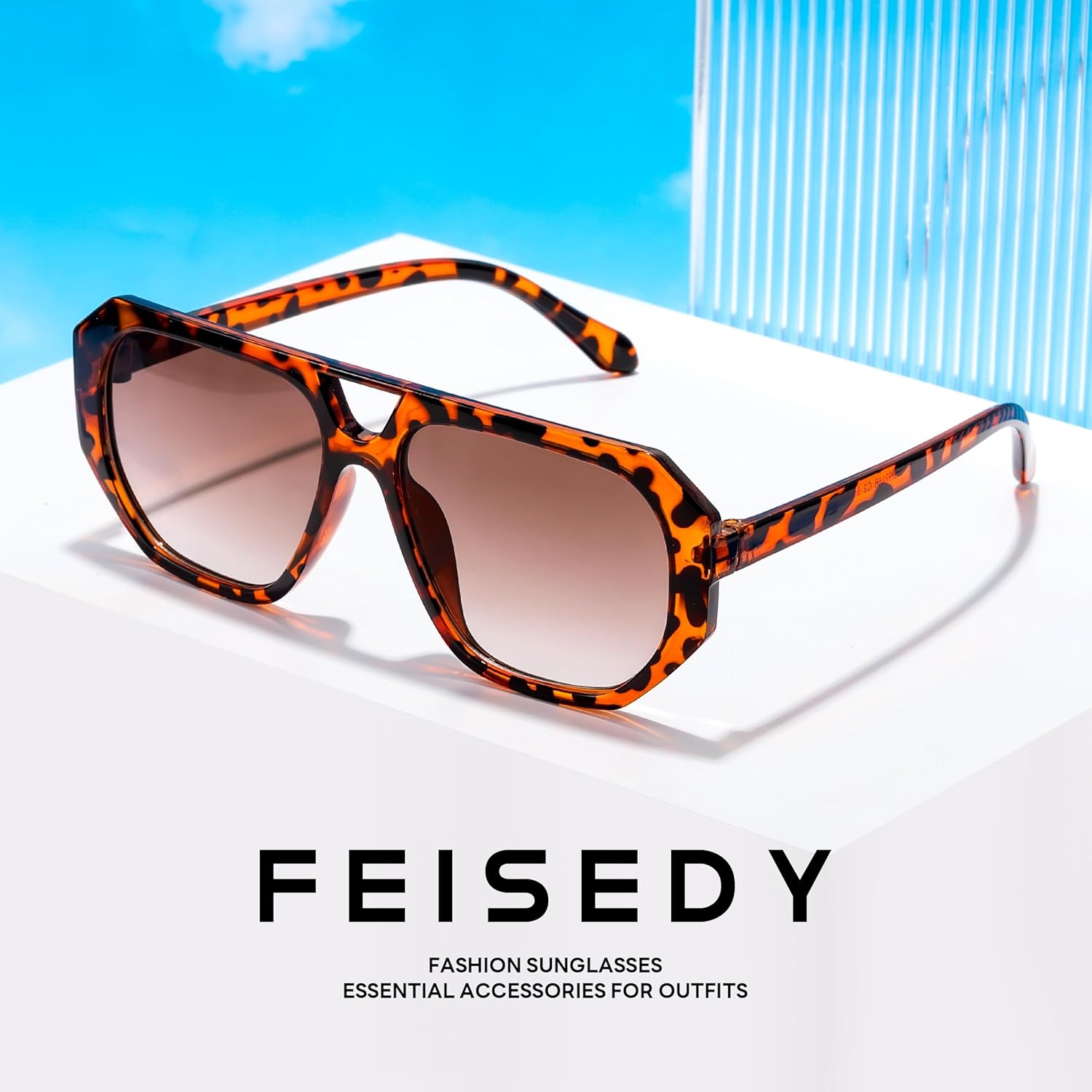 FEISEDY Retro Square Pilot Sunglasses Women Men 70s Vintage Trendy Plastic Frame Sun Glasses B4164