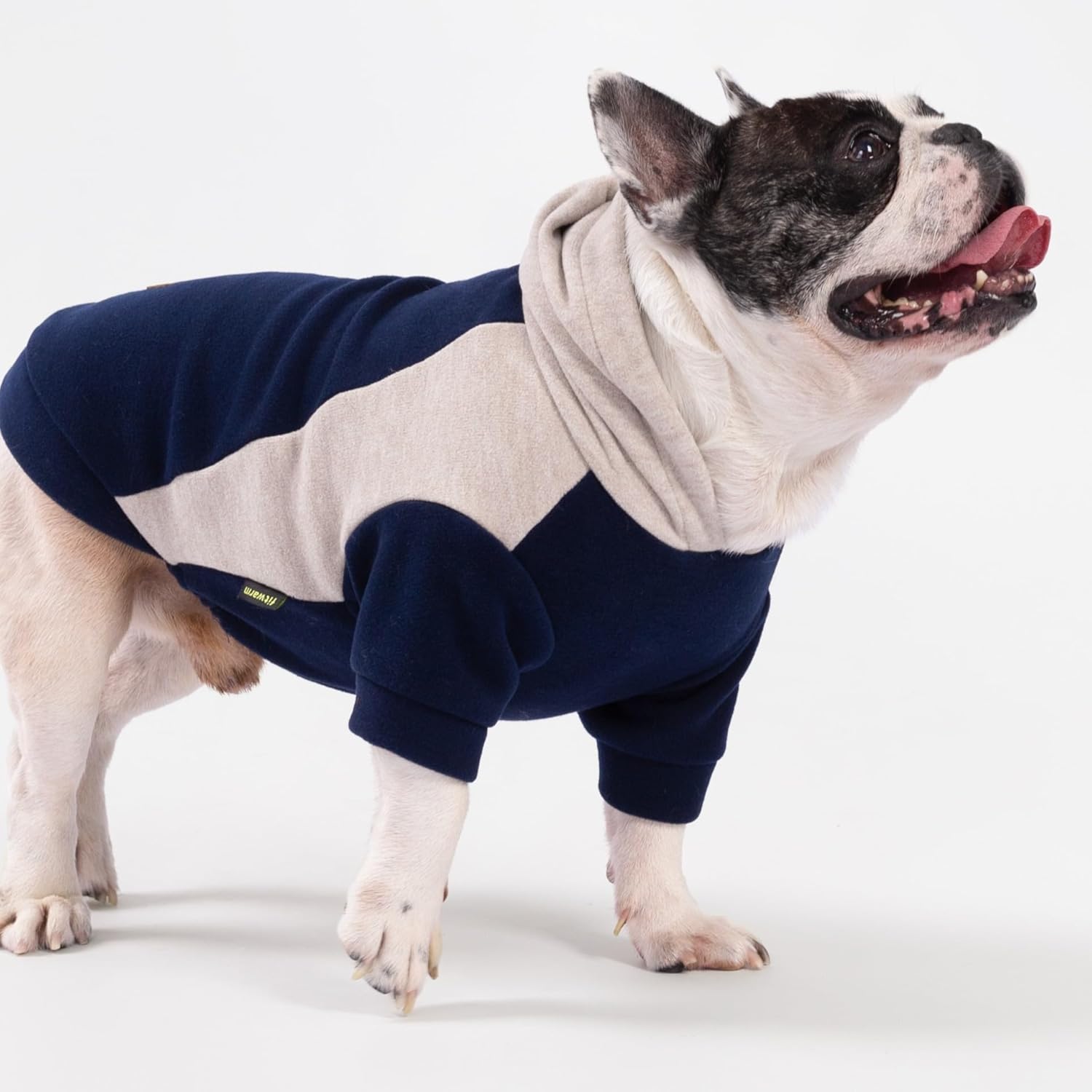 Fitwarm Color Block Dog Hoodie Sweater, Winter Clothes for Small Dogs Boy Girl, Lightweight Pet Sweatshirt, Midnight Blue, Beige, Large