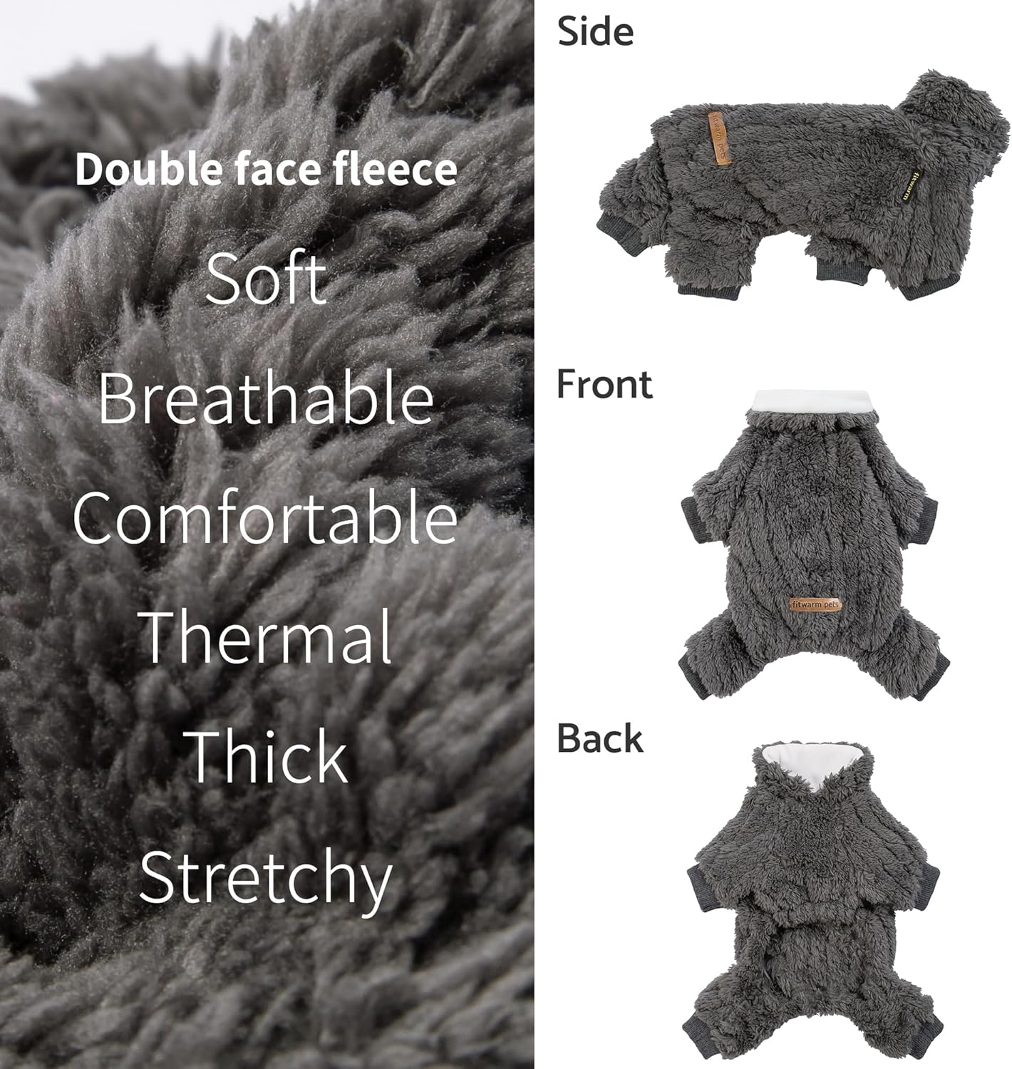 12 reviews for Fitwarm Turtleneck Fleece Dog Sweater Pajamas, Warm Winter Dog Clothes for Small Dogs Boy Girl, Fuzzy Pet Onesie with Feet, Dark Grey, XS