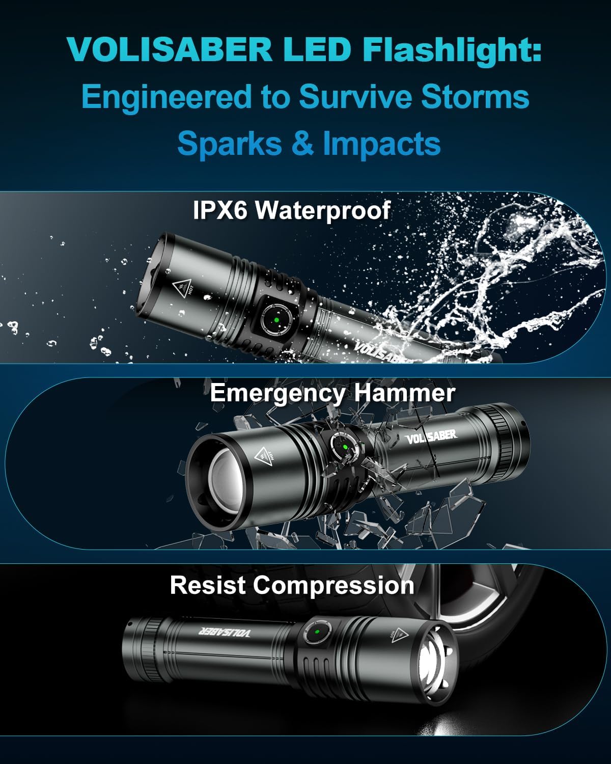 【VOLISABER Flashlight with Fire-Starting】VOLISABER flashlights with ignition lens focus LED power to create a 1200°F ignition point, starting fires in seconds—unlike ordinary flashlights, this is a true practical tool, essential for emergencies, camping, or outdoor cooking