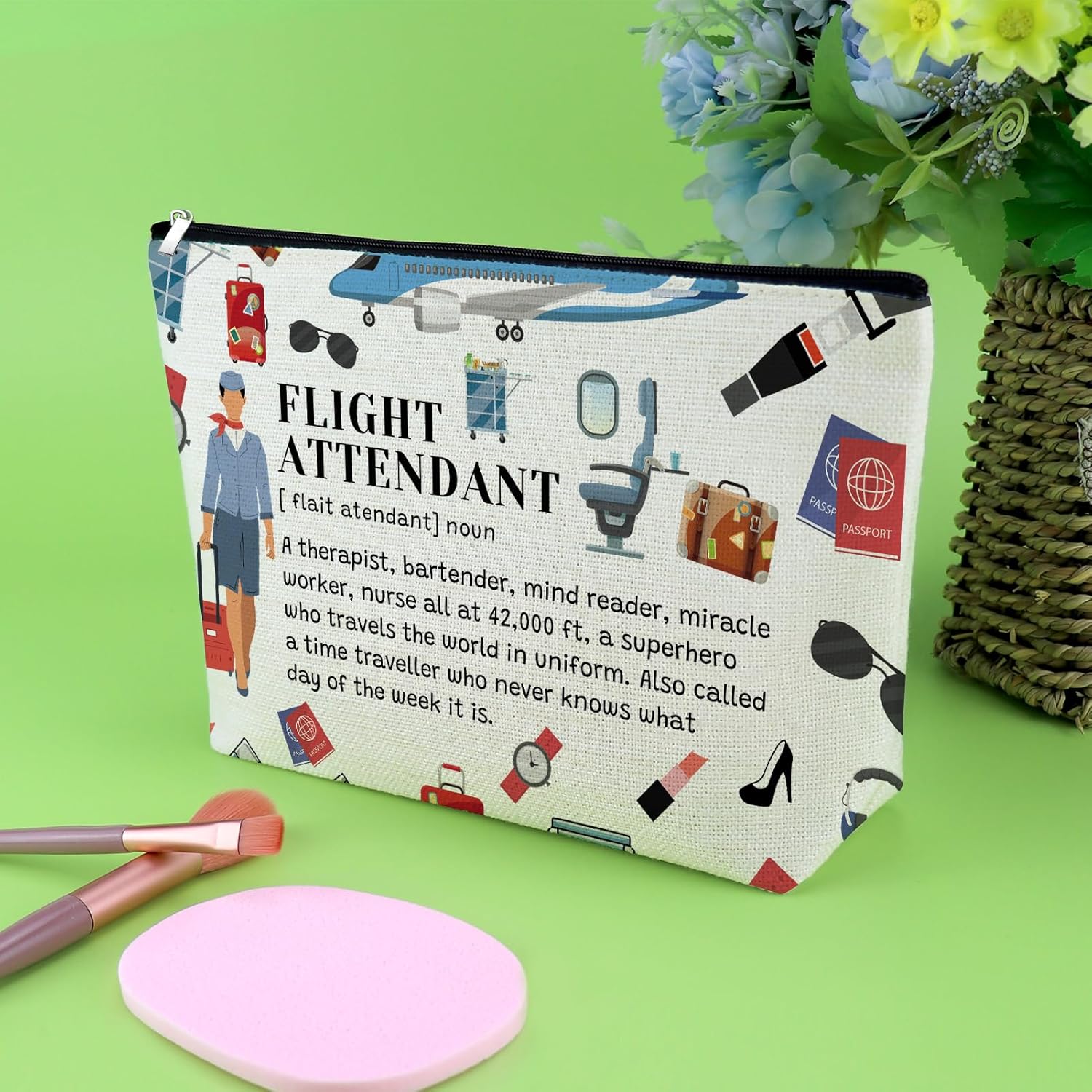 Air Attendant Cosmetic Bag:This is a great gift for your favorite pilot stewardess, flight attendants, travelers, cabin crew, air hostesses or stewardess and steward,friends. Show your appreciation for an awesome flight attendant with this funny makeup bag. Super cool flight attendant is a new travel gift for colleagues and friends .