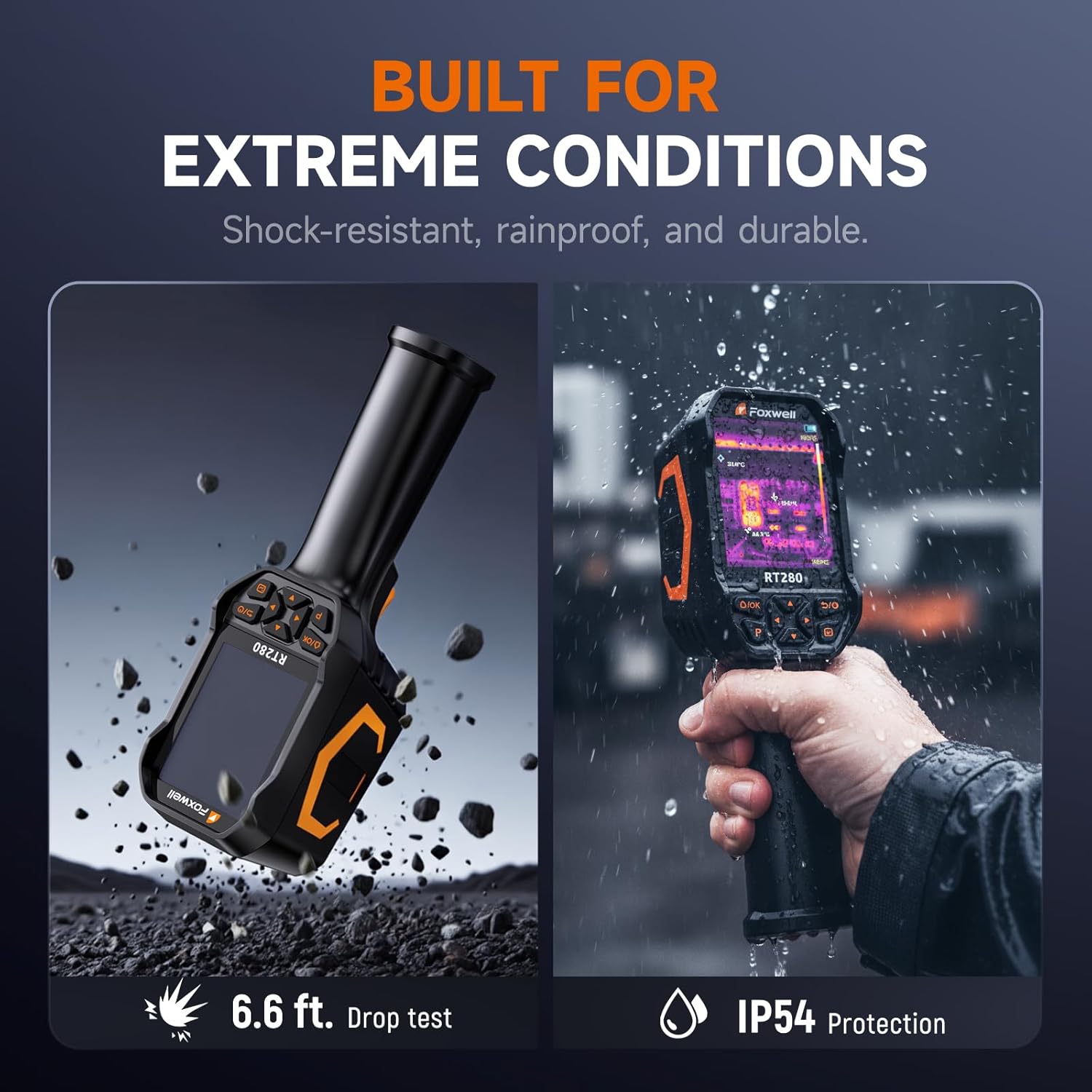 【Portable, Rugged & Field-Ready Design】Designed for demanding environments, the RT280 PRO thermal imager withstands 6.6-foot drops and features an IP54 rating for dust and water resistance. Lightweight and ergonomic, it fits comfortably in hand or tool bags. This infrared cameras thermal imaging device is durable, portable, and reliable, providing professional-grade inspections anywhere with confidence and ease.