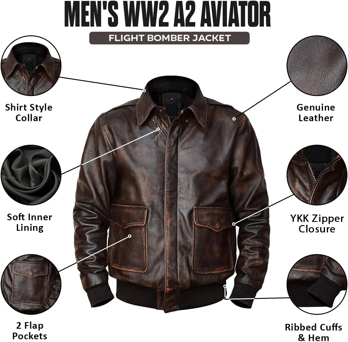 G-1 Leather Bomber Jacket Men – A2 Aviator Style Flight Distressed leather jacket – US Army WW2 Pilot Outerwear