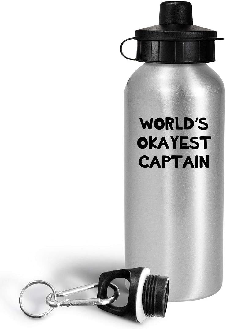 Gifts for Worlds Okayest Captain Recognition Award Water Bottle Tumbler Drinkware – Men Women Commander Chief Officer Army Starship Navy Sailor Ship Marine Boat Pilot Funny Cute Gag Appreciation Idea