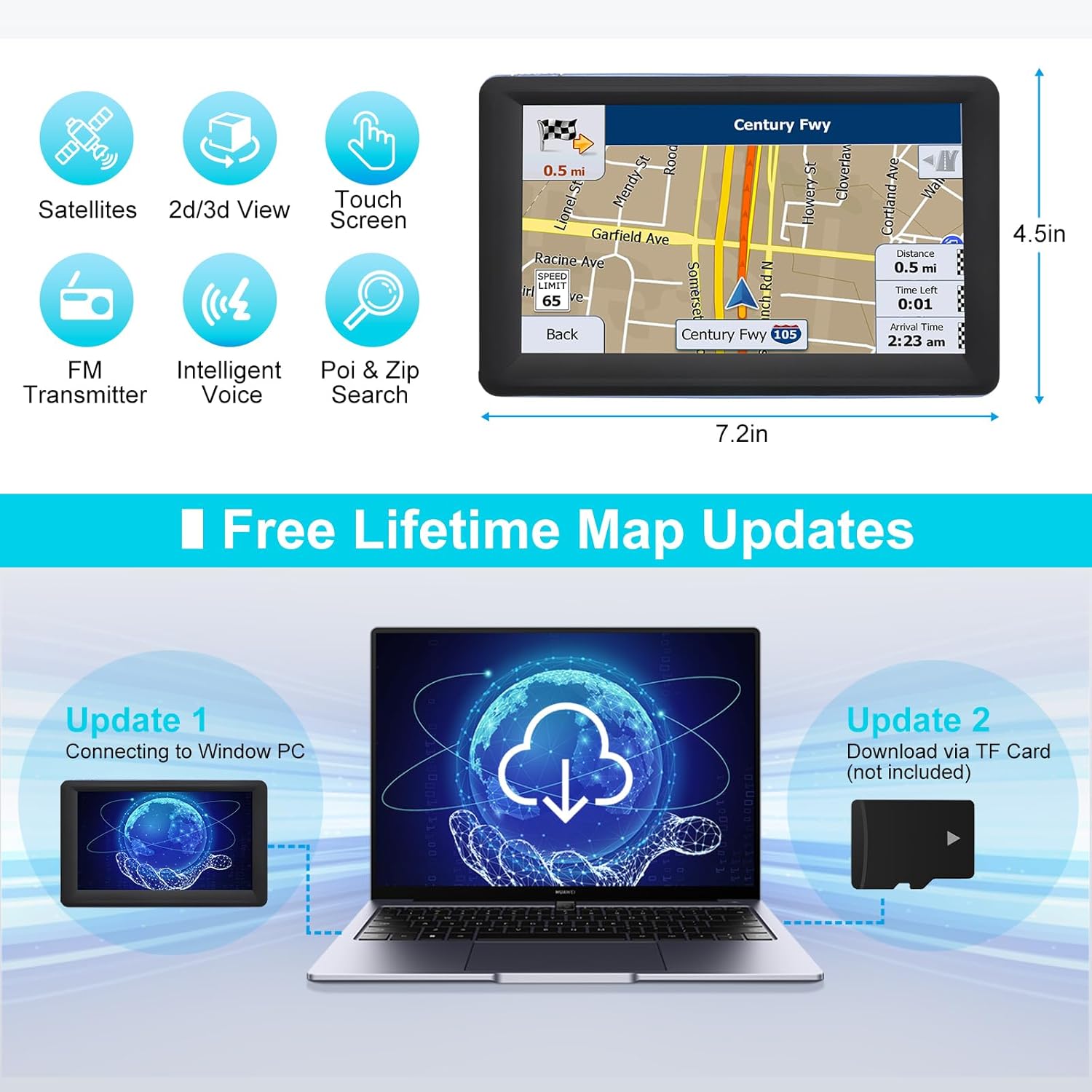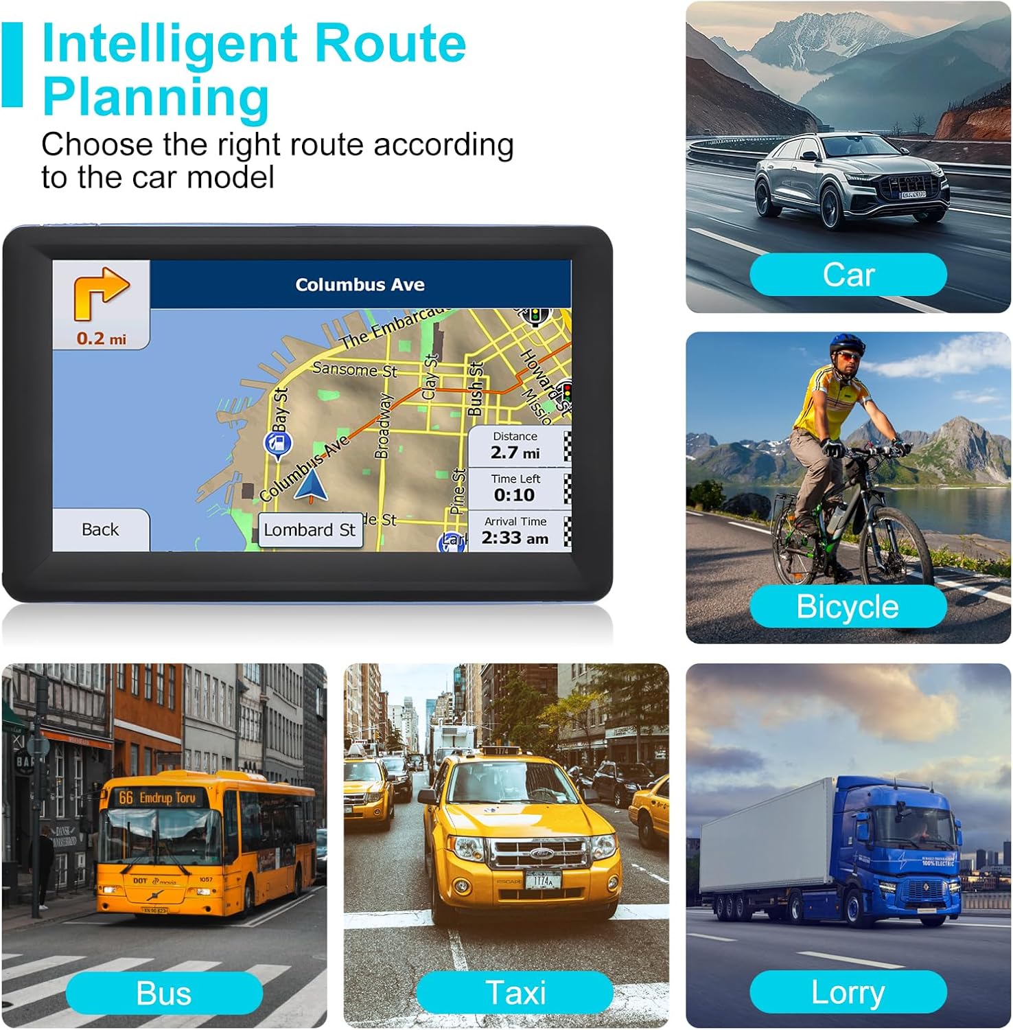 Large & Clear 7-Inch Touchscreen – Features a bright, high-resolution display that shows detailed maps and routes clearly, even under direct sunlight. Easy-to-read interface helps reduce distractions and improve driving safety.