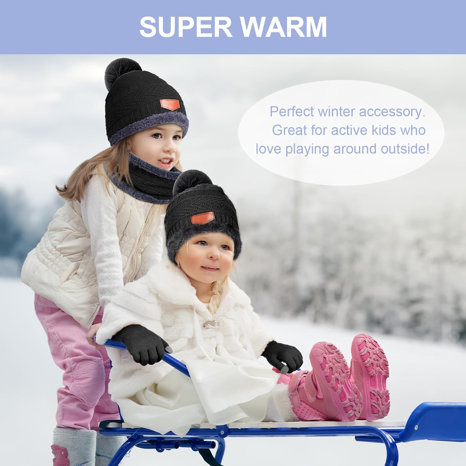 JaGely 12 Pieces Kids Winter Hat Glove Scarf Sets Thick Fleece Knitted Beanie Touchscreen Warmer Gaiter for Boys and Girls