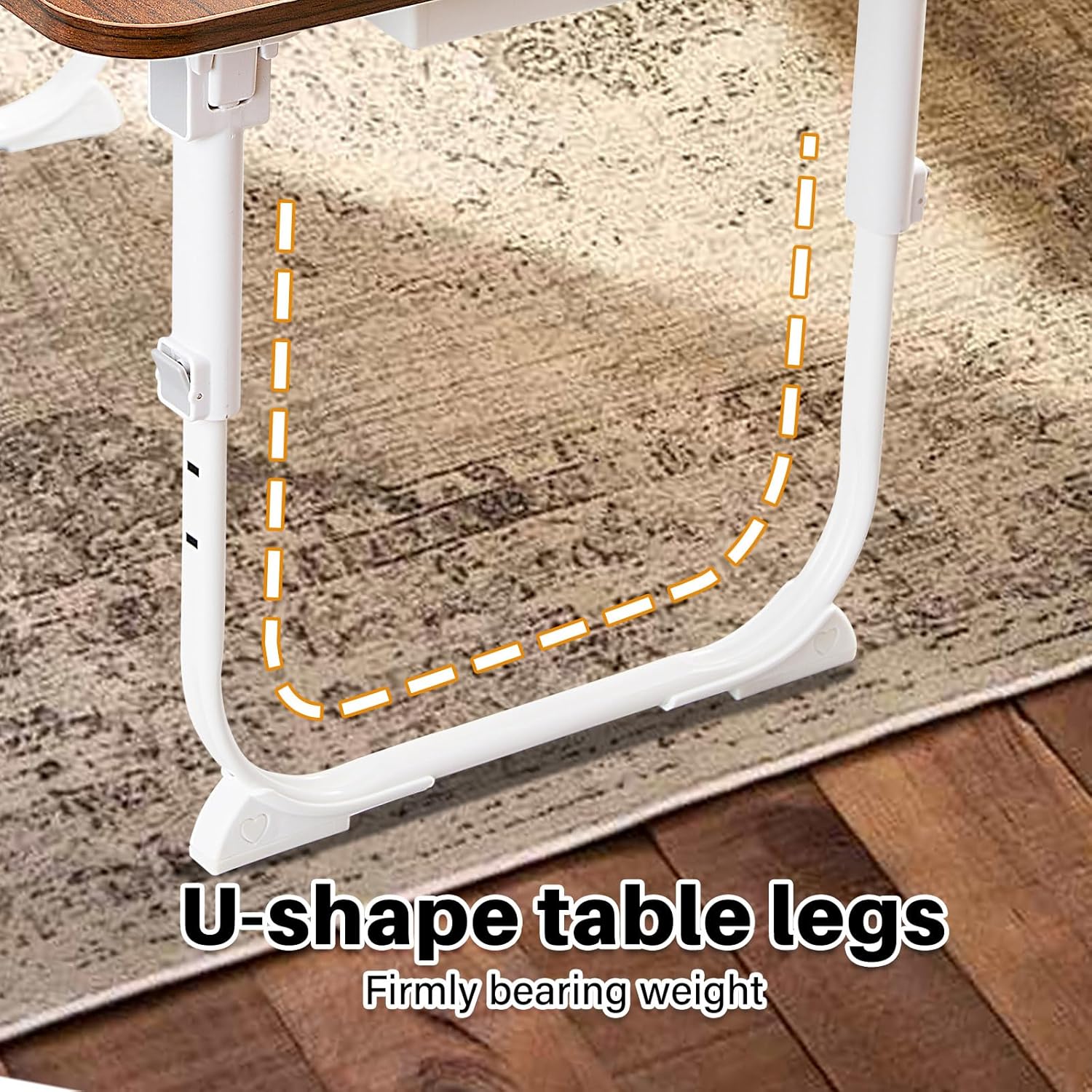 U-Shaped Table Legs Firmly Bearing Weight: Select the high-quality pipe, the table leg is firm and stable, not easy to shake, strong load bearing force, non-slip foot mat to avoid scratching the bed sheet floor, round table corner smooth table, round arc, comfortable and smooth, to prevent bumps and bruises