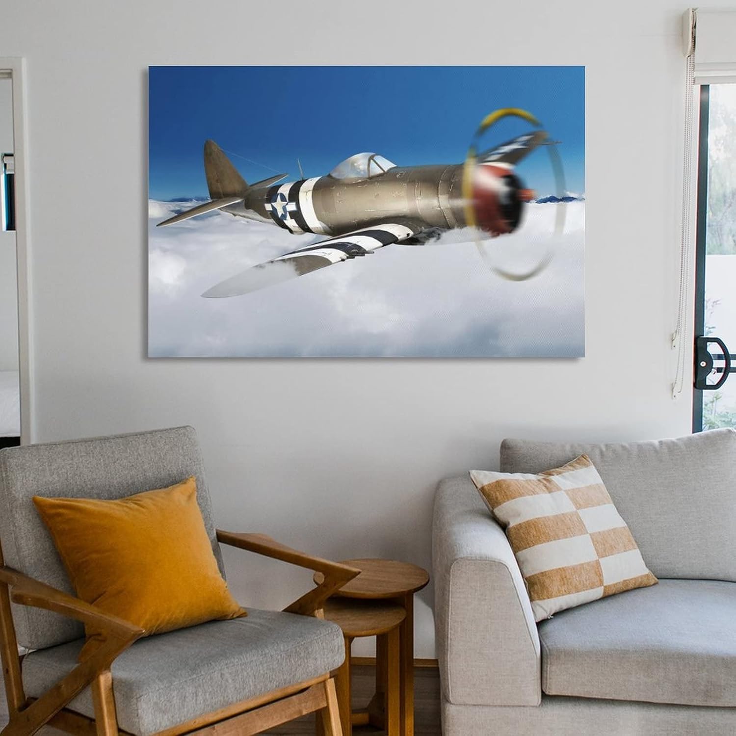 ❤【PREMIUM QUALITY AND VIVID COLOR IMAGES 】Military Aircraft Wall Art P-47 Thunderbolt Propeller Fighter Poster – World War II (WW2)Aviation (1 High-quality canvas,fine texture,no peculiar smell,creating a healthy and comfortable life,Hd pictures printed,lifelike,non-fading,vivid anime scenes would brighten your walls.