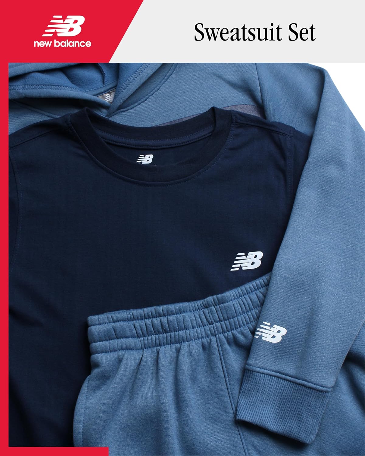 New Balance Boys Sweat Suit Set – 3 Piece Short Sleeve Graphic Tee, Fleece Pullover Hoodie and Jogger Pants for Boys (4-16)