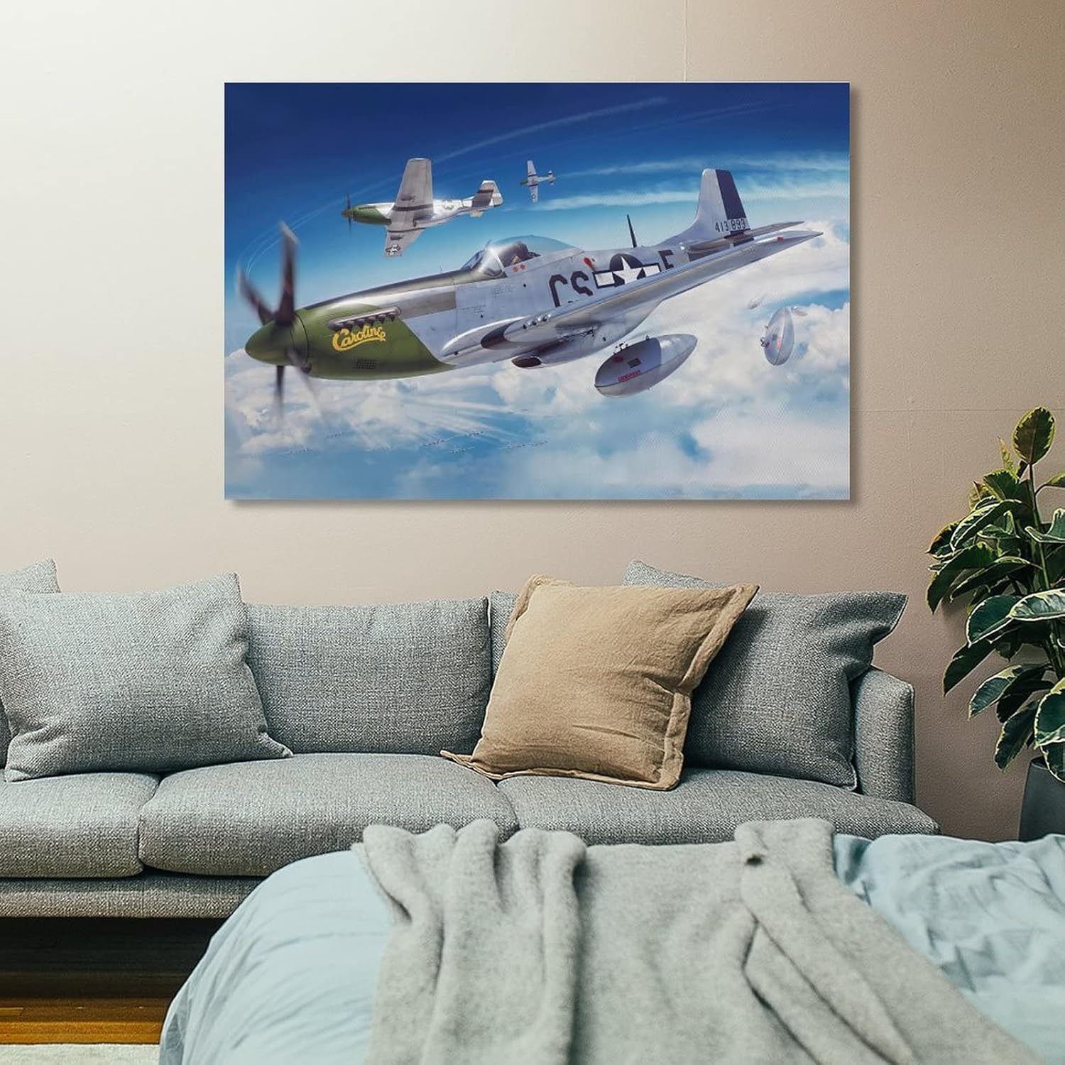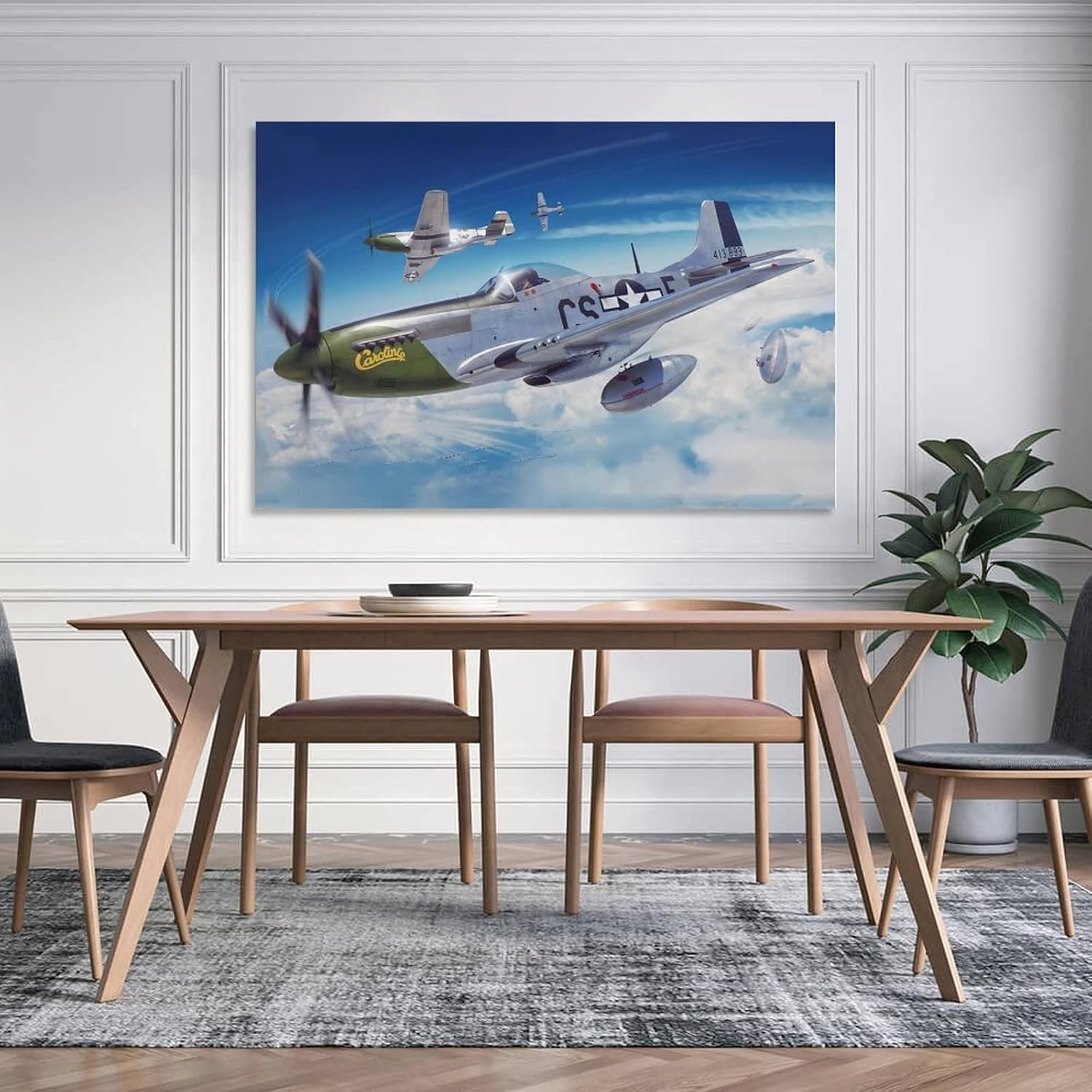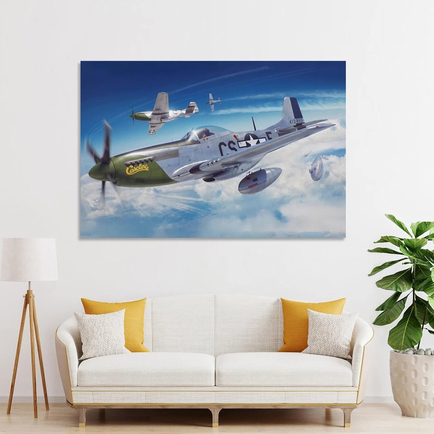 ❤【PREMIUM QUALITY AND VIVID COLOR IMAGES 】P-51 Propeller Fighter, US Air Force, World War II Aviation (3) High-quality canvas,fine texture,no peculiar smell,creating a healthy and comfortable life,Hd pictures printed,lifelike,non-fading,vivid anime scenes would brighten your walls.