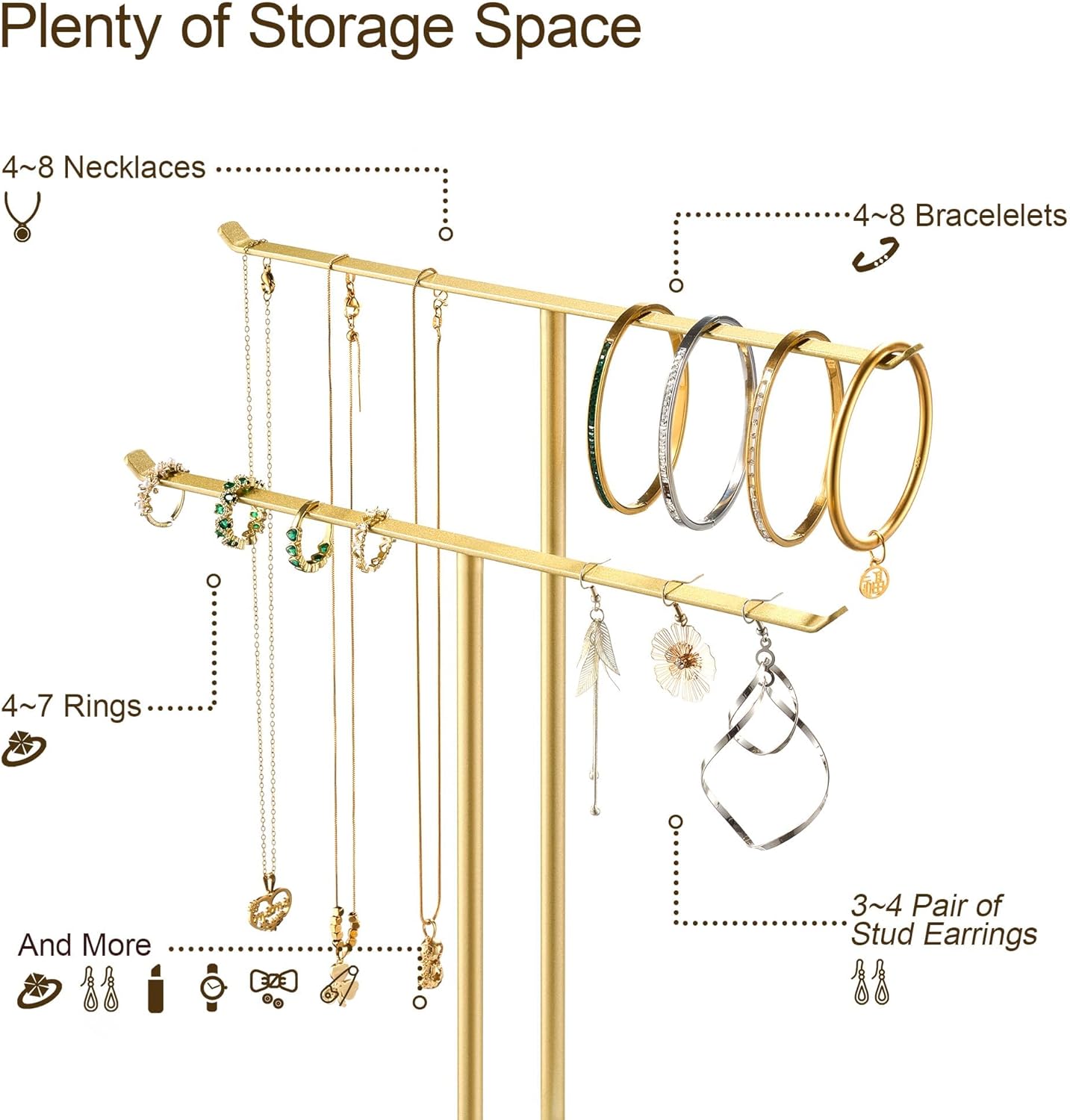13 reviews for pickpiff Necklace Holder Jewelry Organizer Stand – 2‑Tier T‑Bar Jewelry Display Tree with Tray for Countertop Necklace Bracelet Earring Storage, Vanity Dresser Bathroom Sink, Gold