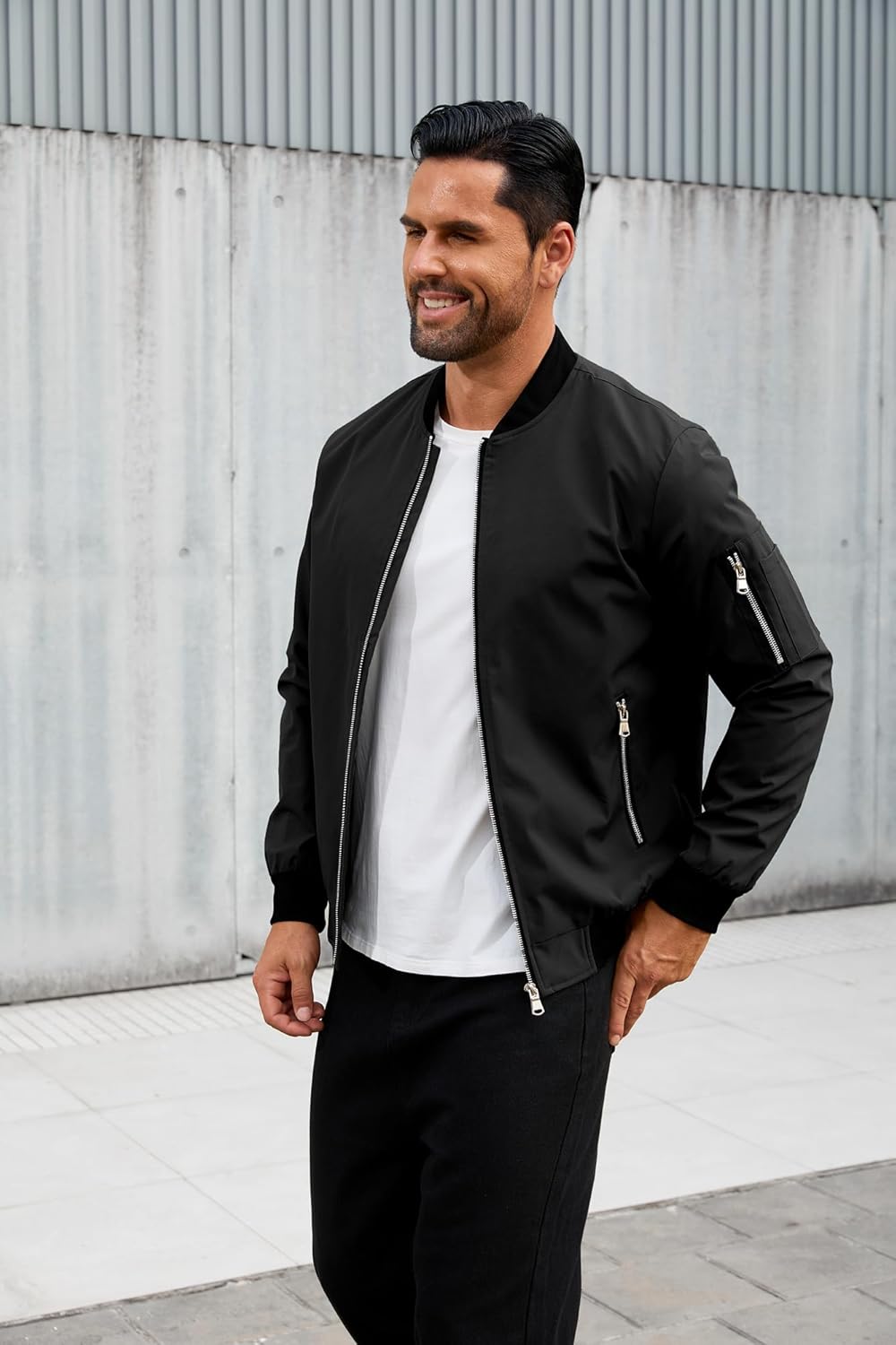 Jacket for Men Fashion Windproof Bomber Jackets Coat Lightweight Casual Spring Fall Stand Collar Windbreaker Zip Up with Pocket