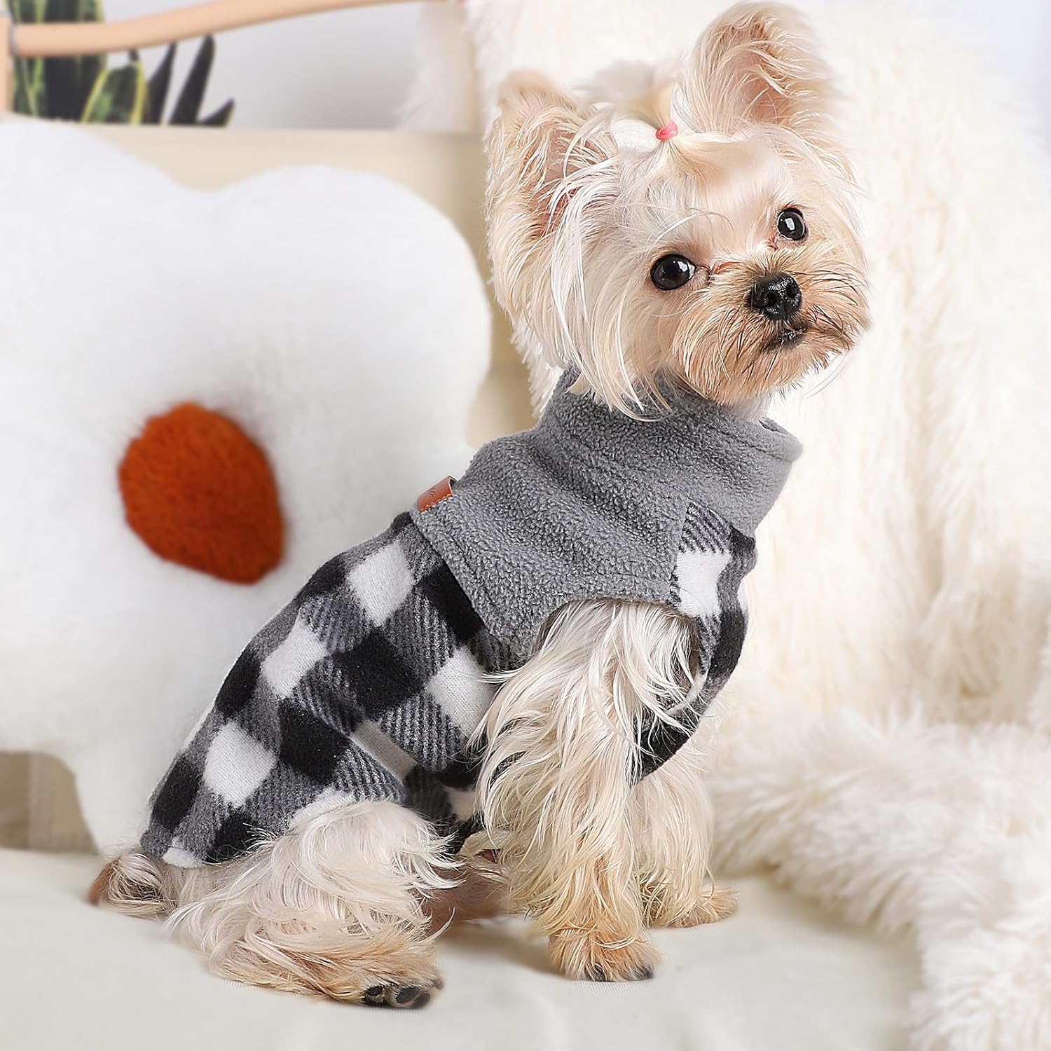 【Fleece Dog Sweater Design】Our fleece dog vest is a pullover for easy on and easy off allows, with patchwork classic black and white check design, winter warm dog fashion items. This spring thin dog coat is suitable for all kinds of occasions, preparing to let your pet stand out from others.Dog outfit with leash hole perfect for your dog to keep warmth and display beauty when going outside. xxs dog clothes,small dog clothes for girls,winter dog clothes,dog fleece vest.