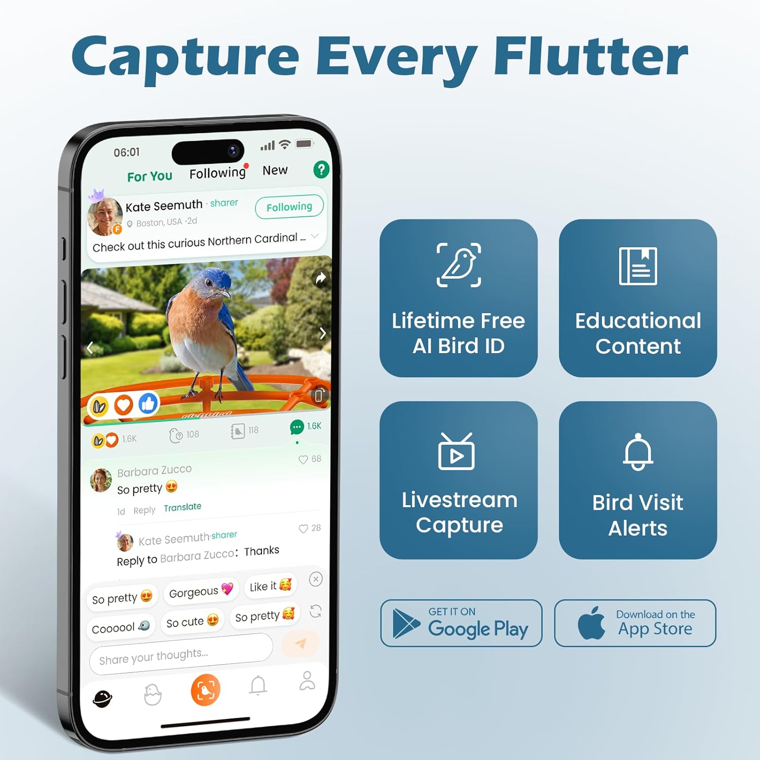 Live Bird Watching on Your Phone: Whether you’re at home or out, never miss a feathery visitor. Our smart bird feeder with camera streams live HD 2K video directly to your phone and sends instant notifications, bringing you up close with nature in real time