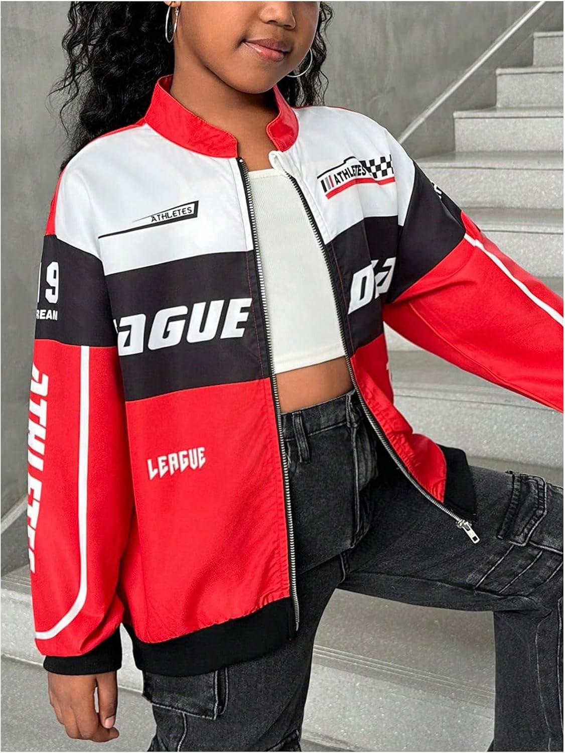 SOLY HUX Girl’s Zip Up Bomber Jacket Y2k Long Sleeve Racing Motorcycle Outerwear Streetwear