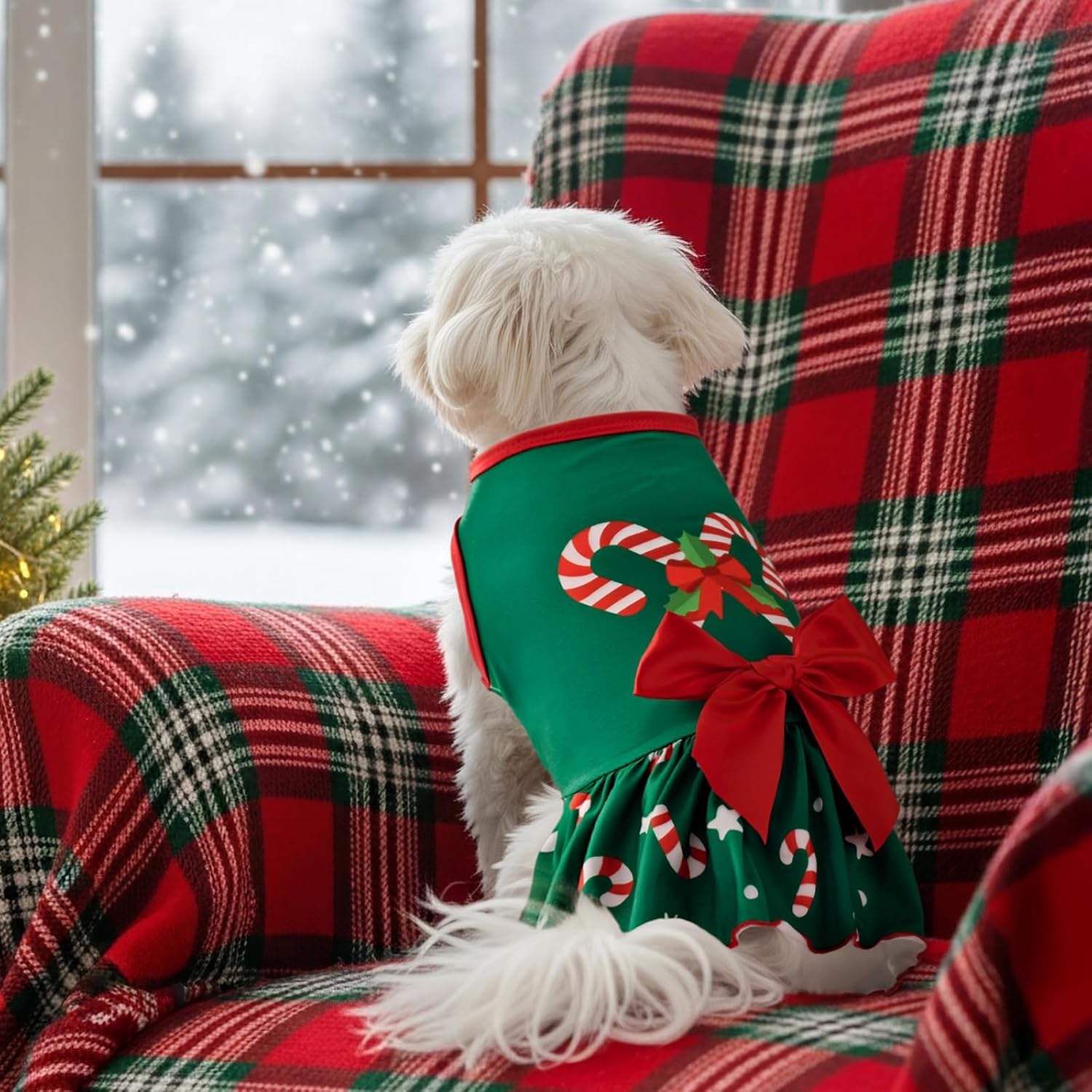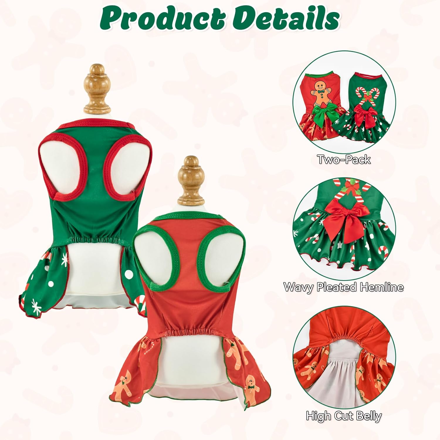Vehomy 2-Pack Christmas Day Dog Cat Dress Christmas Dog Dresses with Bow Xmas Pet Bowknot Skirt Outfit Costume for Puppies Cats Small & Medium Dogs L