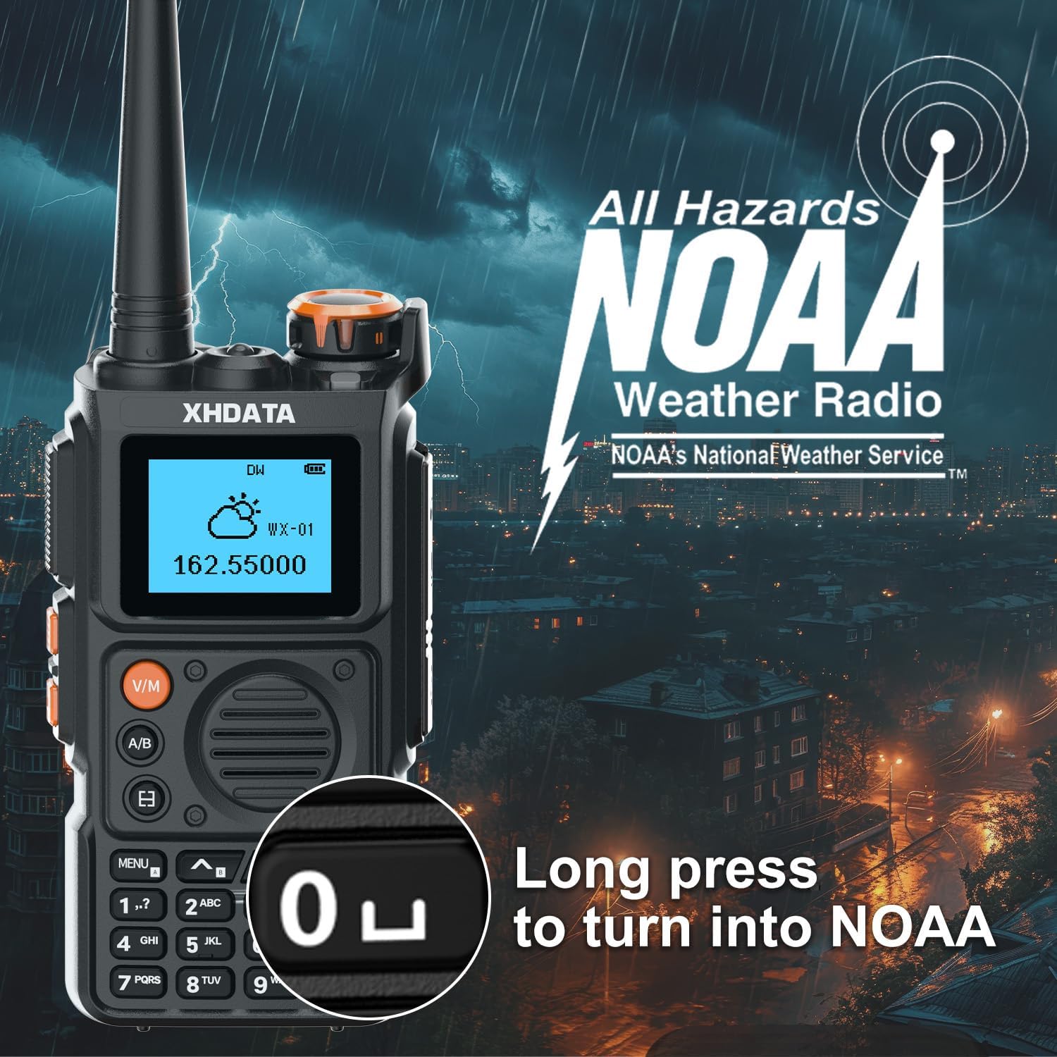 XHDATA E100 Walkie Talkie Long Range, UHF/VHF/FM/Aviation/Weather Band, 6W Two Way Radio with 3000mAH Battery, 999Channels, CTCSS/DCS, NOAA Weather Alerts, for Outdoors(1 Pack)